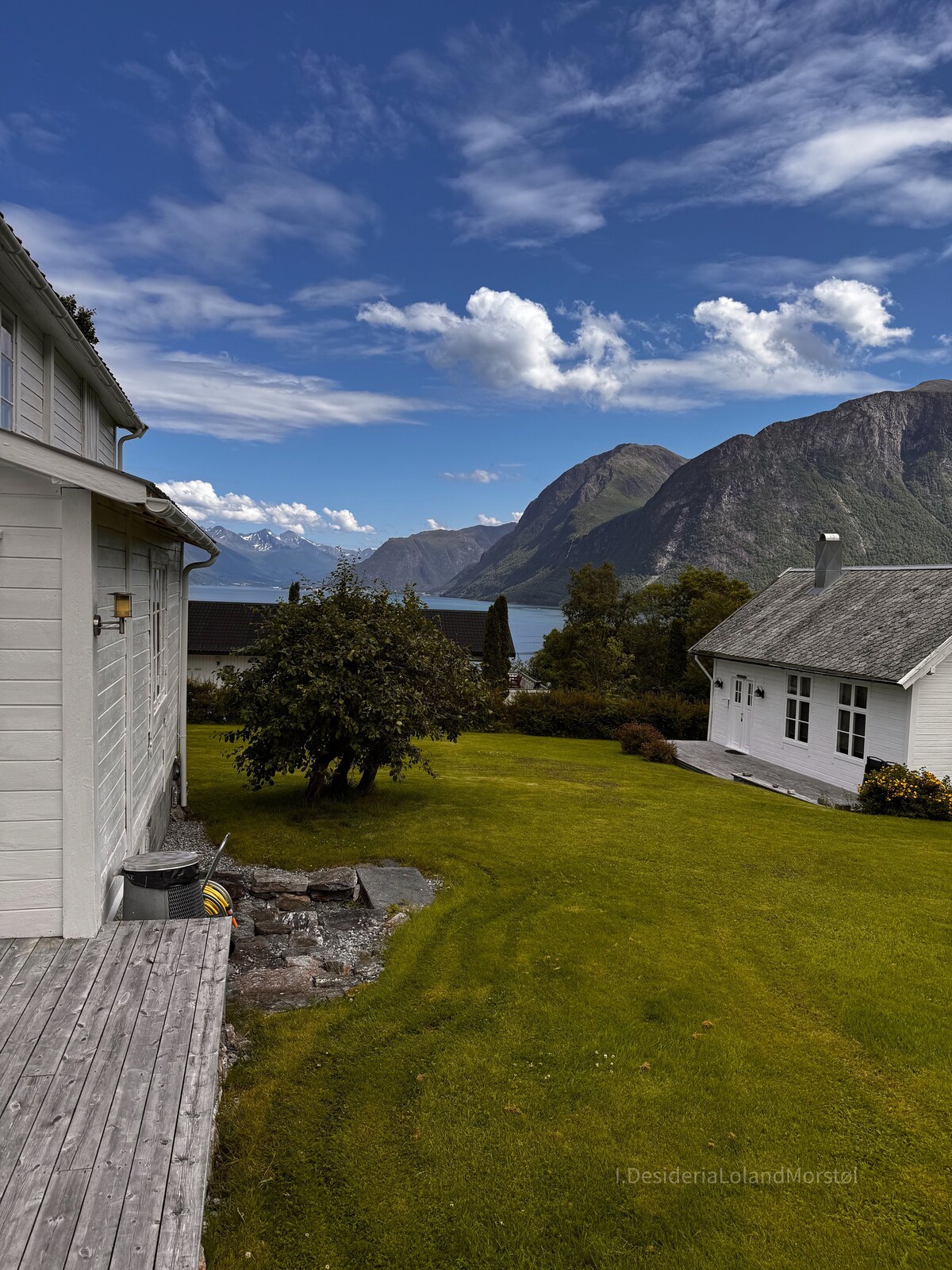 Schønes Ferienhaus mit herrlicher Aussicht auf Fjord und Berge . Das Haus verfuegt ueber eine Fussbodenheizung im Erdgeschoss, grosser Wohnkueche, Bad mit Dusche und Waschmaschine ,Wohnzimmer mit Sat TV, Schlafraum mit 4 Betten und einer Terasse mit Blick auf vorbeifahrende Kreuzfahrtschiffe. Es ist der perfekte Ausgangspunkt , um Norwegens schønste Sehenswuerdigkeiten zu besuchen. Dazu gehøren die Trollstigen , Trollveggen ,Geirangerfjord, Atlantikstrasse,Rosenstadt Molde und Ålesund.