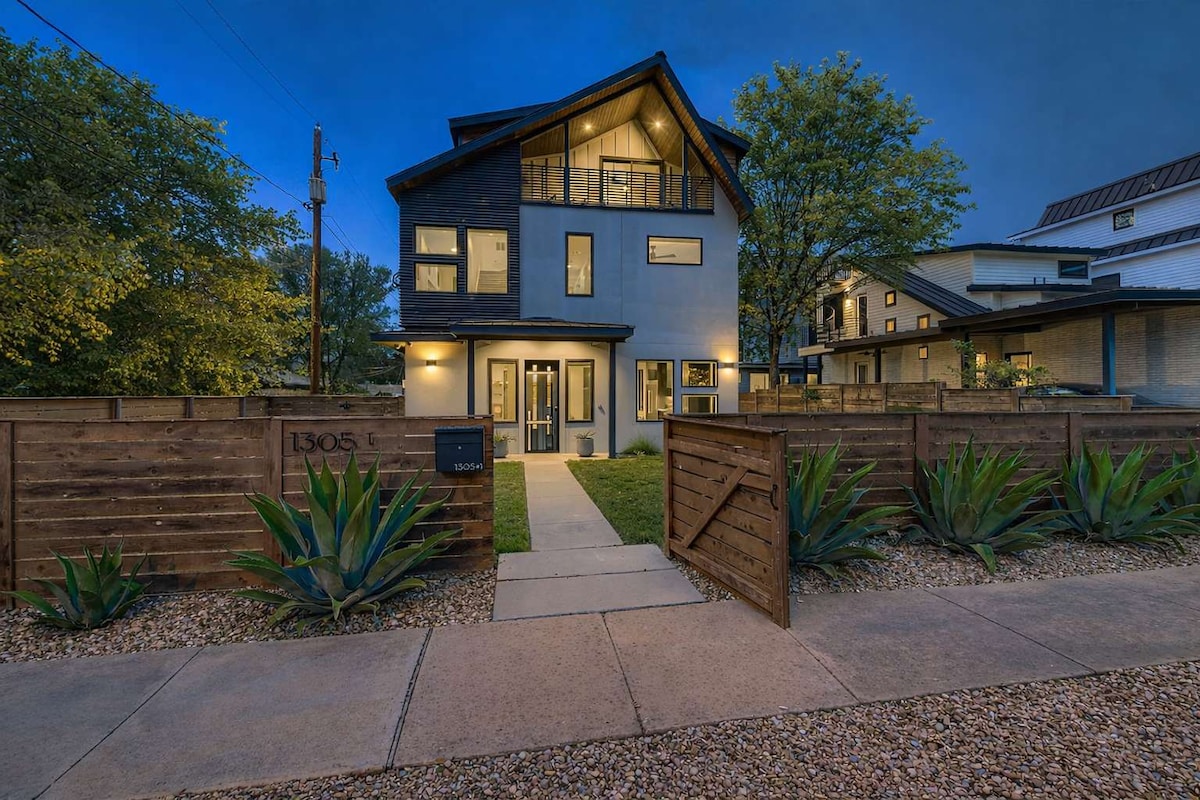 歡迎來到我們新建的現代化寬敞房源@prime Downtown location。距離穆迪中心、穆迪露天劇場和國會大樓僅幾步之遙。步行幾分鐘即可抵達UT、6th St&Convention Center。 享受通風的室內和室外生活空間,全年開放的泳池和按摩浴池,以及有圍欄的私人後院。非常適合商務差旅、旅遊、家庭團聚、住宿、單身(女)度假和特別活動慶祝。配備室外烤架/用餐設施、免費停車位和高速WiFi。