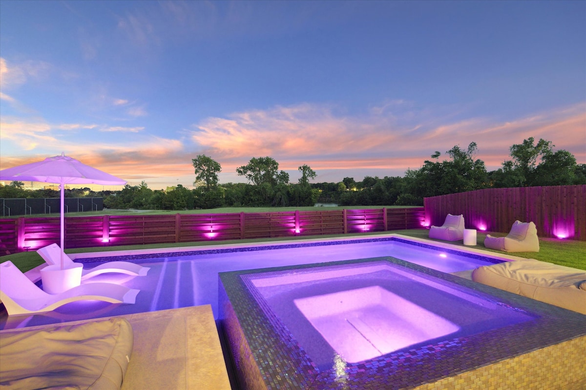 我們正在慶祝與Airbnb合作10週年,提供特別價格-我們的10週年特別優惠,25%折扣(預訂3晚以上)。 參觀您的特別活動、家庭聚會、單身派對、商務會議等。 在世界現場音樂之都閒逛! 我們改造的房源有10人14英尺泳池水療中心,以及5人乾熱桑拿!放鬆身心! 之後,前往市中心的Rainey St、6th Street,然後前往SOCO享用美食和購物(僅5分鐘路程!) 靠近Zilker Park、SOCO、Barton Springs、City conf. + UT。
