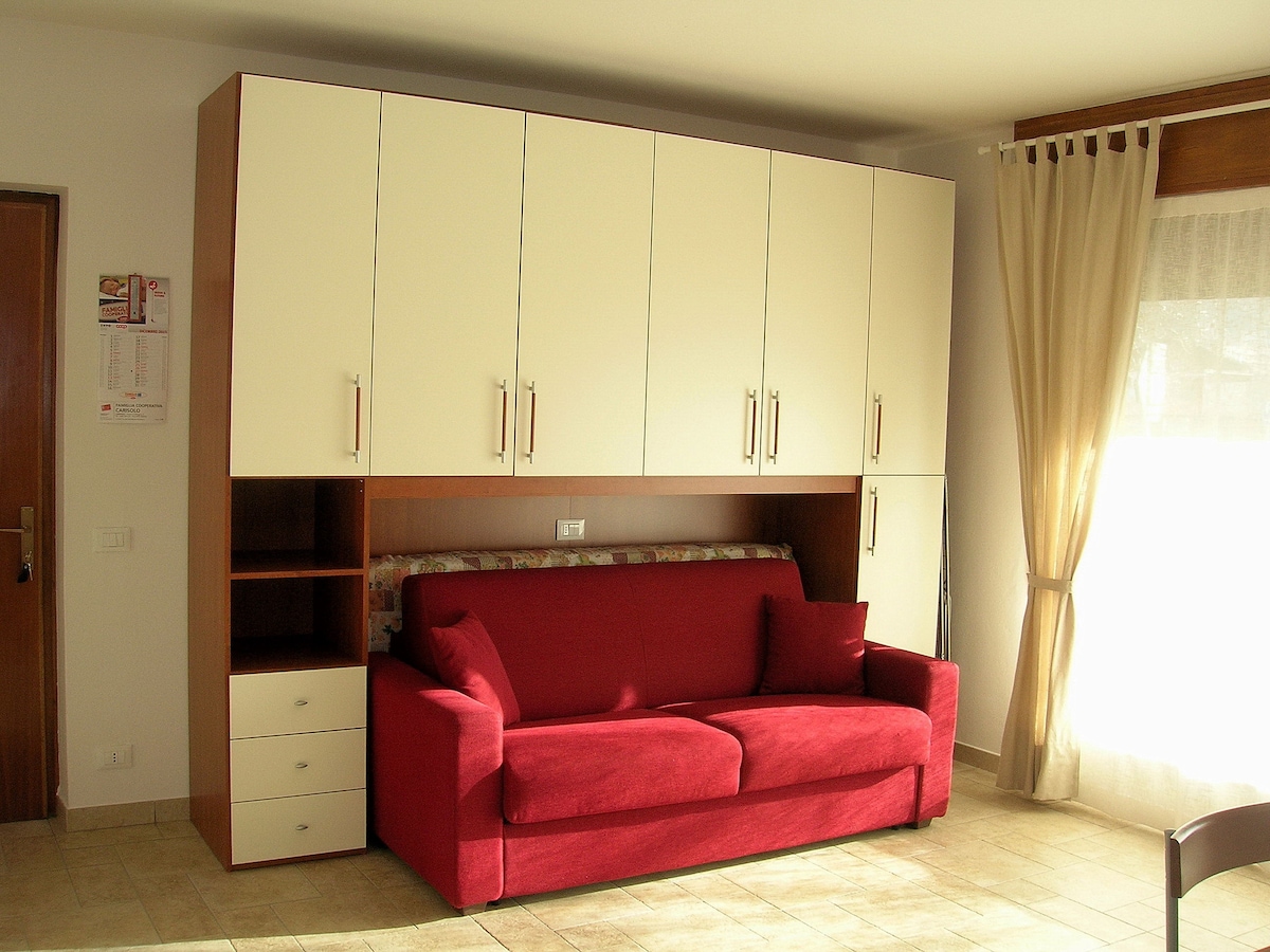 舒適的雙人房,位於特倫託東山丘上,在一個安靜安靜的住宅區域。 浴室配備淋浴間,供房客使用,並與我們租用的另一間房間共用。 您可以從花園欣賞城市和山脈的景致。 房子距離特倫託5公裏,也可以乘坐公共交通工具抵達。 房源內有私人停車場。 我們的房客可以進入花園,在夏季可以進入泳池。 CIPAT 022205-AT-012728