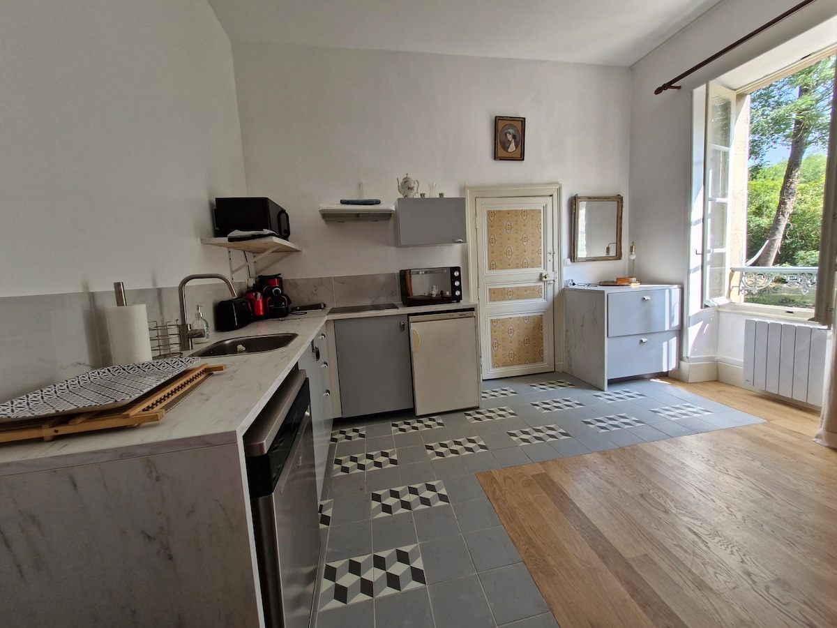 迷人的自炊式公寓 歡迎來到我們舒適、設備齊全的公寓,位於我們大房子的末端。 您可以享用配有沙發床的客廳、寬敞的臥室、功能齊全的廚房和淋浴間。 非常適合安靜的住宿,四周是大自然,距離便利設施和高速公路10分鐘 如果您願意,您可以享用花園家具和桌椅。