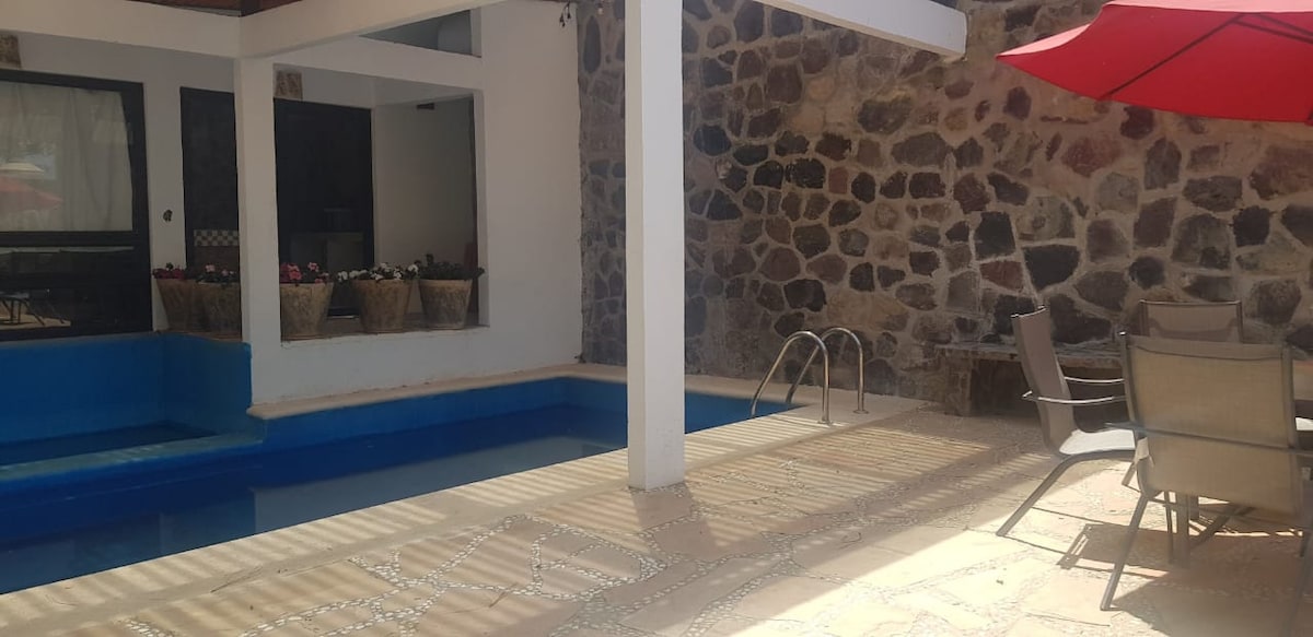 您在森林中的新家! 設有私人泳池和按摩浴缸,在10處房源的安全住宅區內,距離阿凡達羅( Avandaro )中心不到5公裏。 非常適合希望被大自然包圍的團體。 房源有4間臥室(每間都有全功能浴室)、露臺、燒烤設施、花園和火坑。 所有臥室均設有全功能浴室, 3間位於樓上, 1間位在一樓,配有一張上下鋪。 不允許舉辦派對。