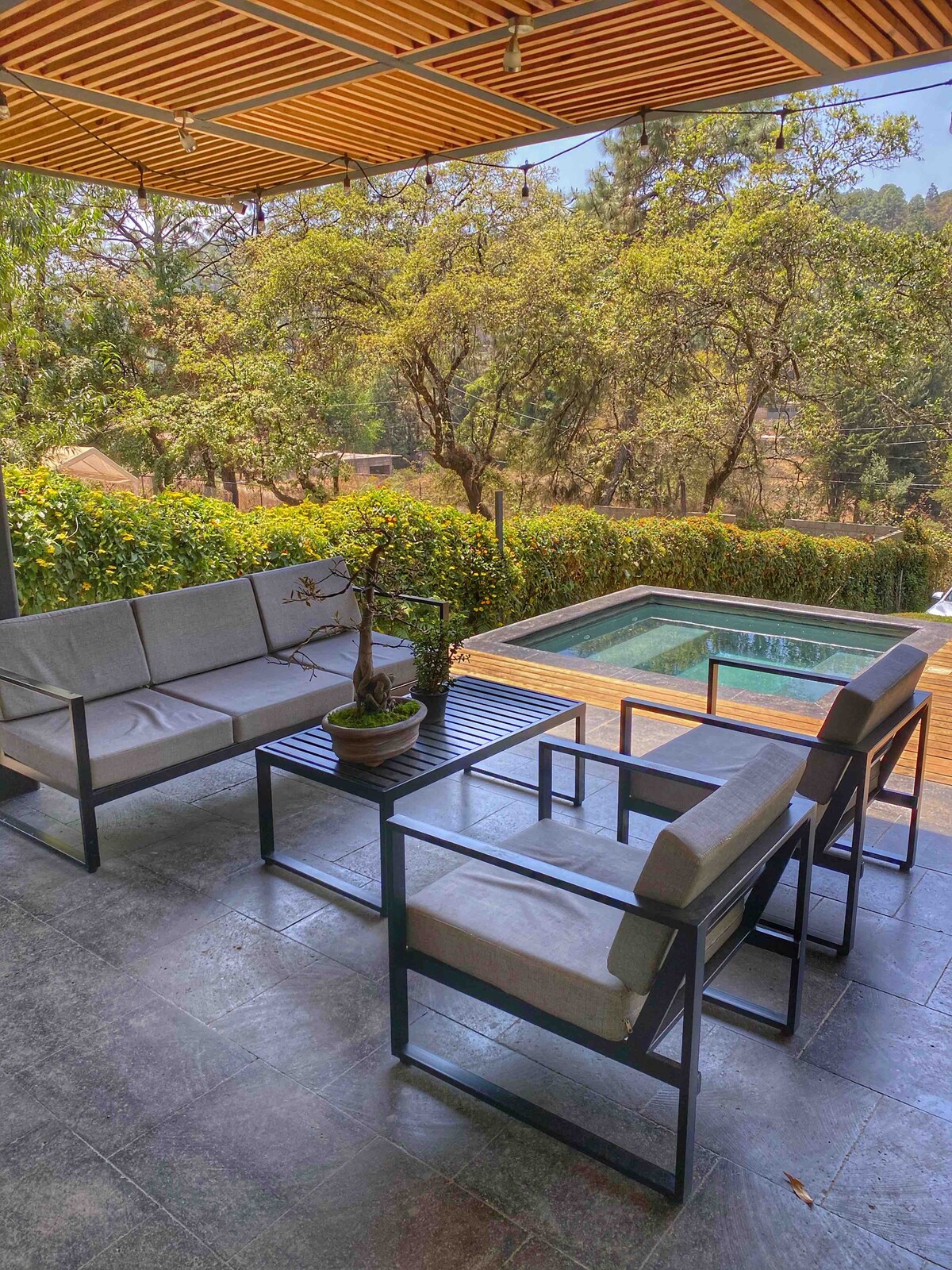 Your new home in the middle of the forest! With private pool and jacuzzi, within a safe residential compound of 10 properties, less than 5 km away from the centre of Avandaro. Ideal for groups looking to be surrounded by nature. The place has 4 bedrooms (each one with a full bathroom), terrace, bbq facilities, garden and fire pit. All the bedrooms have a full bathroom, 3 located on the upper floor and 1 located on the 1st floor with a bunk bed. PARTIES ARE NOT ALLOWED.