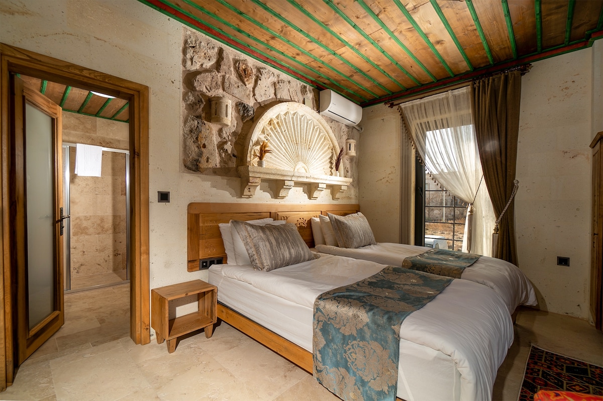 「Route Cappadocia」提供6間獨立客房,配有私人浴室、冰箱、水壺和花園茶點。每間房間都有中央暖氣和空調。房客可以在陽台、露臺和花園欣賞日出時的氣球。咖啡廳供應早餐、土耳其特色菜餚和飲料。氣球起飛區和仙女煙囪都在附近。您可以預訂熱氣球飛行和該地區的旅遊。