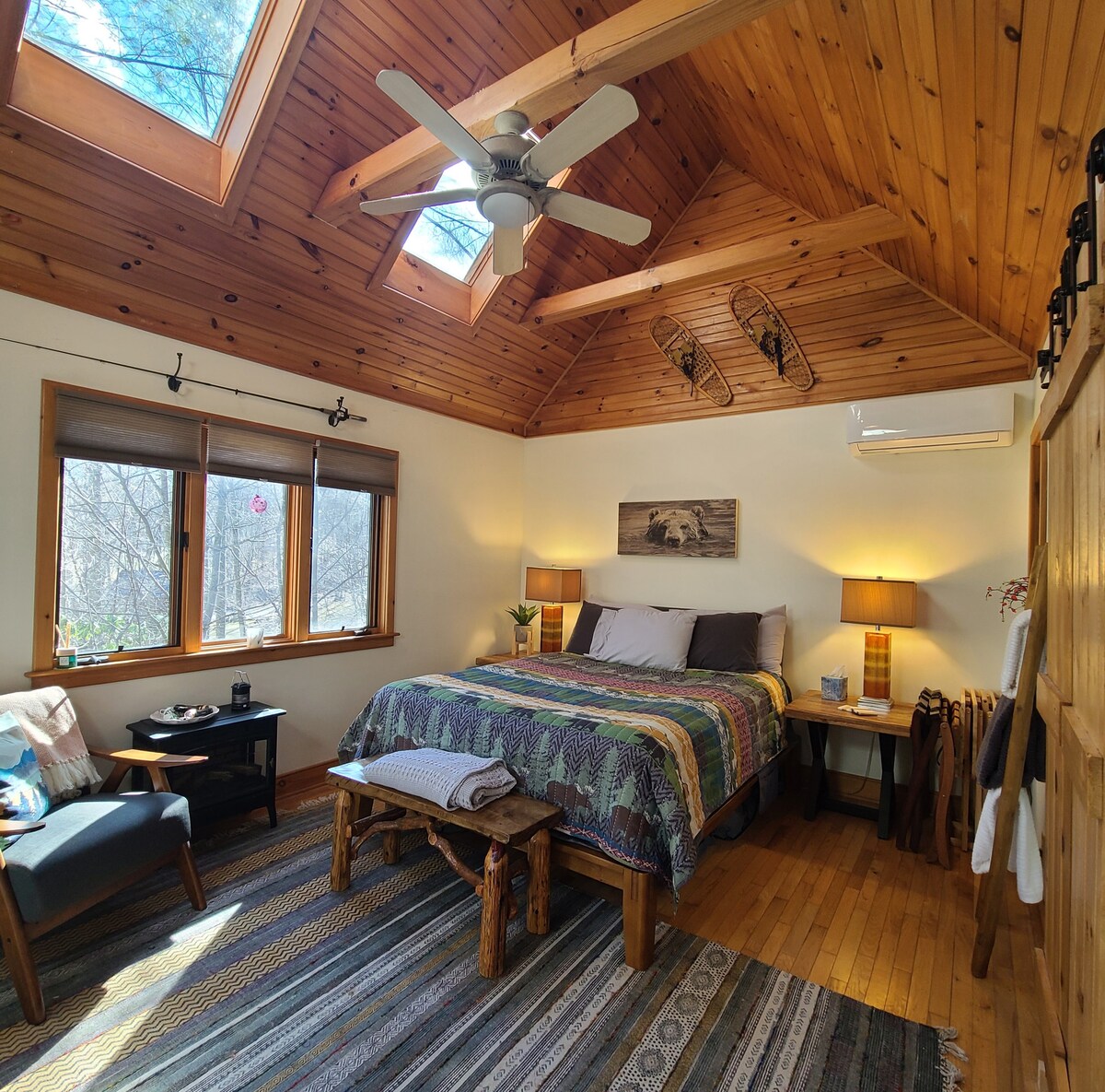 坐落在一個安靜、安全的山區社區,您會發現客用套房。 門外是一個改造過的獨立浴室,配有瓷磚淋浴間。 入住期間,您將享用Keurig咖啡機,提供免費咖啡和小吃。 有私人停車場、帶椅子的私人火坑和完全獨立的入口。 社區提供一個可愛的湖泊和一個奧林匹克規模的泳池(季節性)。 請向我們詢問有關作為我們的客人參觀祖父山的事宜。