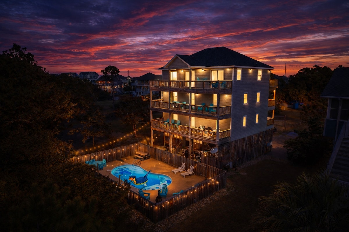 歡迎來到Makai Sunrise ,這是一間半海濱小屋,提供最好的OBX海灘之一,門外有美麗的日出/日落。 位於安靜的海灘前街區,距離海邊1個地段,方便的海灘通道位於車道盡頭附近-步行30秒即可抵達海岸! 整套房間都很漂亮,有5間臥室、3間淋浴間、2間半浴室、撞球桌、飛鏢板等,Makai Sunrise提供在海灘上度過一天或在室內曬太陽所需的一切!
