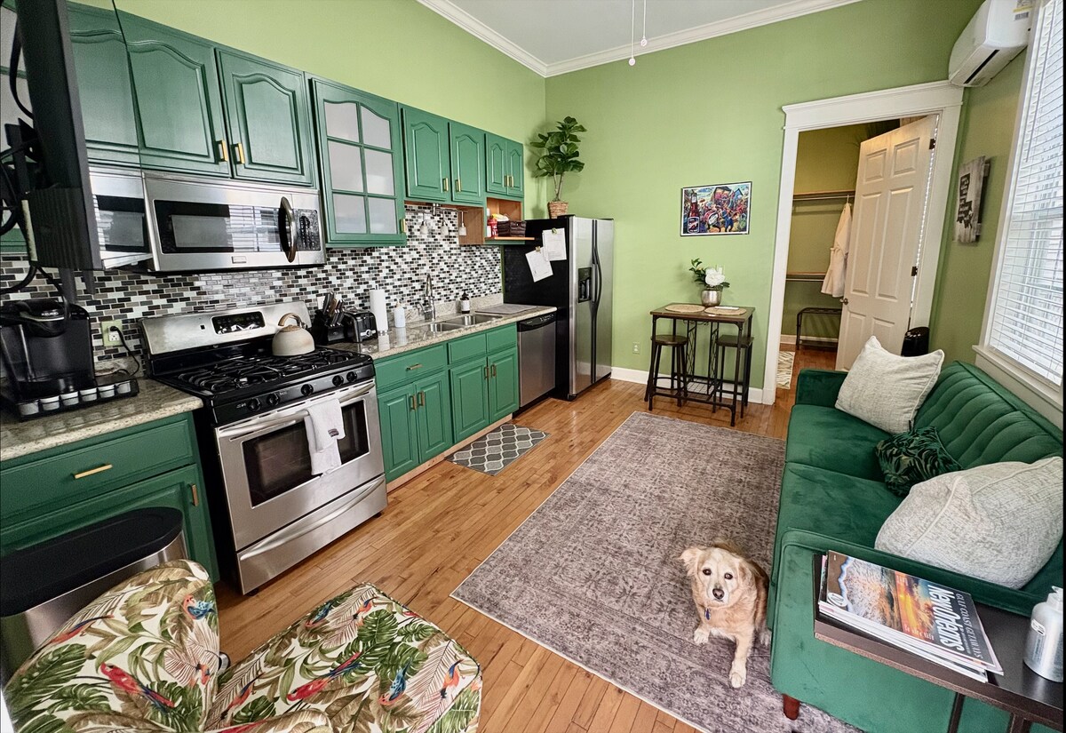 打開黃色的前門,進入一間將傳統建築與現代巴黎氛圍融為一棟公寓。 在光線充足的臥室中醒來,穿過落地窗,走到華麗的環繞式陽臺。 這間可愛的單臥室公寓設有全新的廚房和浴室,具有現代化的巴黎氛圍。 打開黃色的前門,進入客廳/廚房組合,在漫長的一天乘坐有軌電車後,您可以舒適地放鬆身心,在Audubon公園漫步,在Frankie & Johnny's吃poboys和小龍蝦。 (詳情請參閱我們的完整街區餐廳清單。) 美麗的木製樓梯通往光線充足的臥室、浴室和隱蔽的工作空間。 愉快的浴室牆上有地鐵瓷磚,地板上有硬幣圓圈。 有一個落地窗,可通往環繞式陽臺,可欣賞街景。 查爾斯大道有軌電車和可愛的街區。 房子前面有兩棵巨大的橡樹,在一年中的大部分時間都提供綠樹成蔭的樹冠。 您擁有自己的完全私人的公寓和自己的陽臺。 我們有一扇獨立的前門,通往我們這邊。 我們很樂意隨時回答問題並提供協助。 房源位於一個美麗的街區,附近有一個有軌電車站,只需20分鐘即可抵達市中心。 漫步奧杜邦動物園( Audubon Zoo ) ,在夜晚探索歷史悠久且令人興奮的法國區。 公寓距離街區只有半個街區 查爾斯大道有軌電車站。 房子前面有充足的街邊停車位。 步行即可抵達雜誌街( Magazine Street )、弗雷特街( Freret Street ) (還有許多餐廳和酒吧)和奧杜邦公園( Audubon Park )。 度假或商務,我們希望您能像對待自己的家一樣對待我們的房源。 室內禁止吸煙。請勿攜帶寵物。 禁止深夜餐飲。 您也必須確認: 押金-如果你損壞公寓,可能會被收取高達200 $ 200的費用。