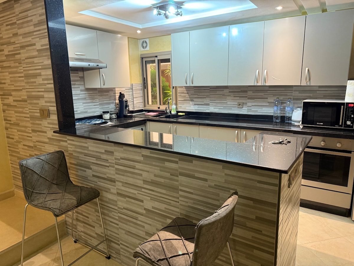 Aourir的公寓,靠近著名的香蕉海灘。 一間臥室配有雙人床、美國廚房、浴室和舒適的客廳。 陽台可欣賞迷人的海景和泳池景觀。 直接開入海灘。 住宿設施齊全,住得愉快。 非常適合享受自然環境、日落和海邊的平靜。 真正的天堂,適合您度假。