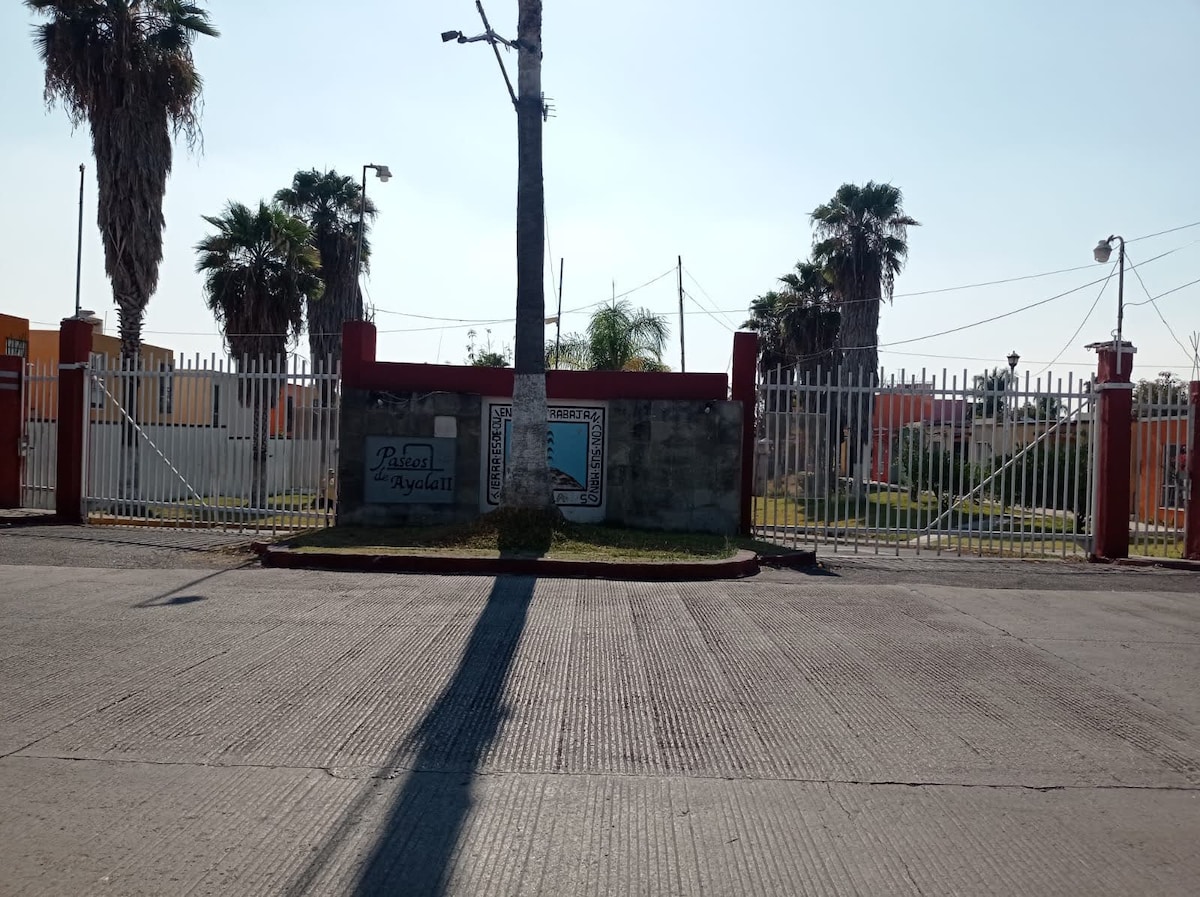 這是一棟位於庫奧特拉 (Cuautla) 安靜區域的美麗房屋,您可以在此享受私人空間。我們距離六旗颶風港奧斯特佩克 (Six Flags Hurricane Harbor Oaxtepec) 12 公里,距離庫奧特拉跳傘 (Skydive Cuautla) 12 公里。房子按人數和晚數出租。 開車 10 分鐘即可抵達 Bodega Aurrerá 和 Oxxo,5 分鐘即可抵達一家品類繁多的雜貨店。Cuautla 入口處有沃爾瑪和 Sams