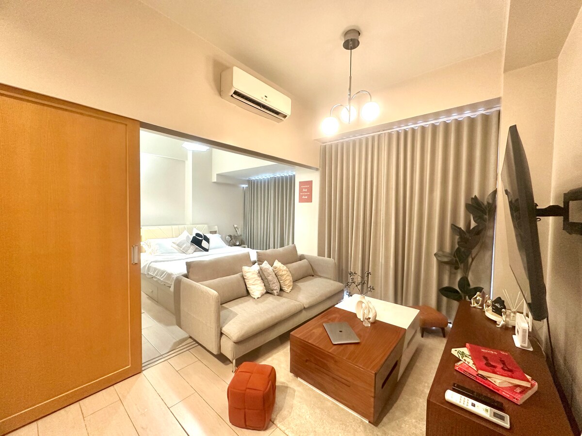 在馬卡蒂市中心找到完美的度假勝地。 這間日式風格的度假屋將日本的極簡風格與北歐的舒適感融為一體,為工作和放鬆提供了一個寧靜的天堂。 距離頂級商場和辦公室僅幾步之遙,您可以輕鬆前往城市的所有景點。 在室內泳池中放鬆身心,或在健身中心鍛鍊身體,然後在寧靜的空間中放鬆身心。 體驗寧靜與便利,你的終極城市度假勝地就在這裡。