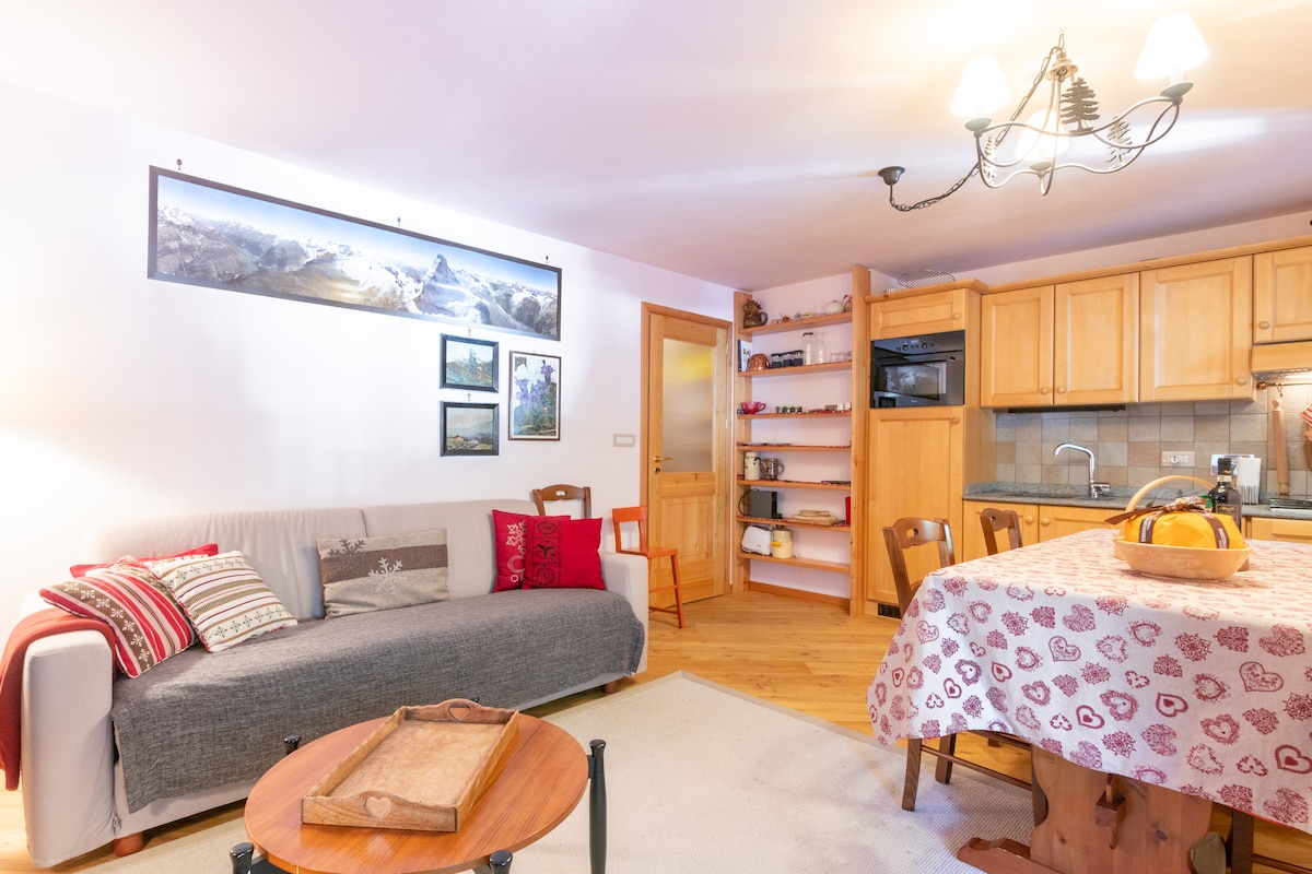 The <b>apartment in Ayas</b> has 1 bedrooms and capacity for 2 people. <br>Accommodation of 45 m². <br>It is located in a a family-friendly zone and in a mountainous area.<br>The accommodation is equipped with the following items: garden, washing machine, internet (Wi-Fi), hair dryer, electric heating, 1 TV.<br>The open plan kitchen, of induction, is equipped with refrigerator, microwave, freezer, dishwasher, dishes/cutlery, kitchen utensils, coffee machine, toaster, kettle and juicer.
