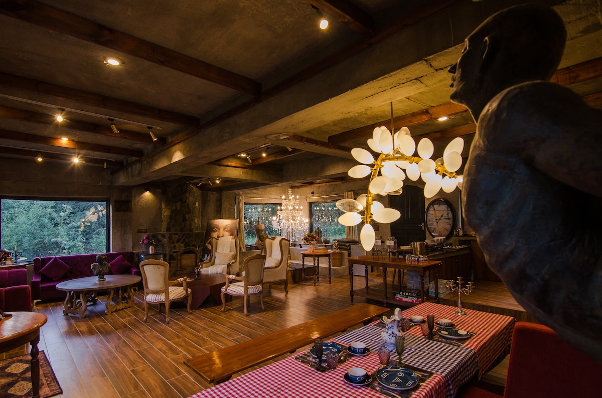 The Ruby是Tangmarg的一顆罕見的現代寶石,距離Gulmarg Gondola僅30分鐘。 這間房源將大膽的紅寶石色內裝與引人注目的玻璃前面設計相結合,使其與其名字一樣珍貴而令人難忘。 從豪華的臥室醒來,欣賞由Gas Bukhari和Kashmiri風格的室內裝潢帶來的壯麗景觀。 早晨在陽台上喝著印度奶茶,晚上圍著篝火或烤肉,讓這個寵物友善的房源的魅力與親人創造持久的回憶。