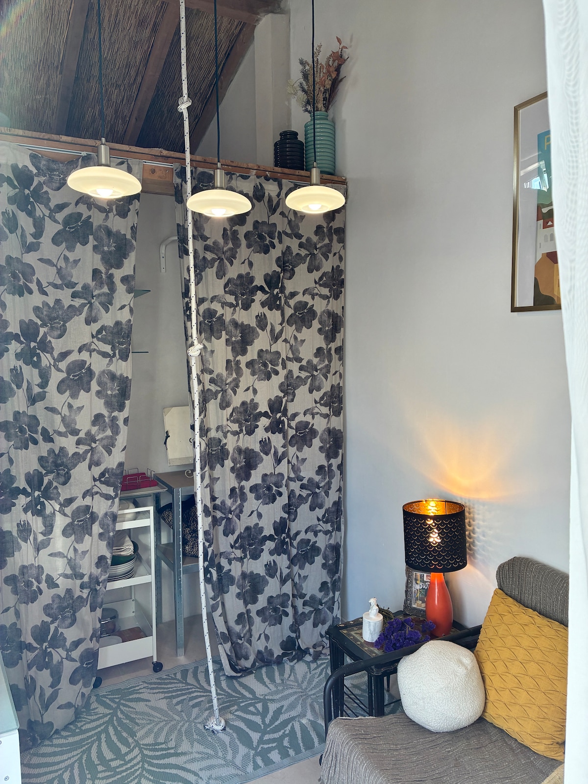 Ce logement affiche un style résolument unique. Avec son couchage en mezzanine (accès par échelle sécurisé), sa kitchenette et sa douche .. il est fonctionnel et agréable d’y séjourner.