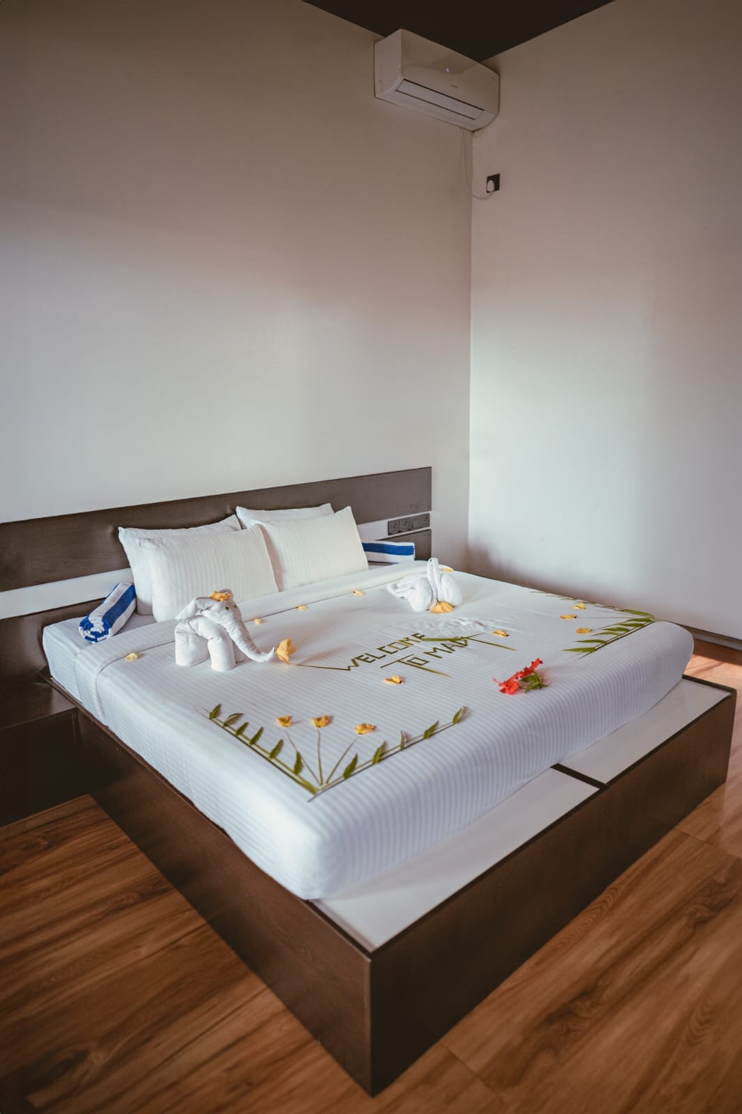 This hip spot offers more than just distinctive decor.The Deluxe Double Room at Madi Giri Guesthouse offers a comfortable and relaxing space, perfect for couples or solo travelers looking to enjoy a peaceful island stay in Maalhos. The room also includes a TV for entertainment, a minibar, and complimentary bottled water and coffee for added convenience. Large windows or a private balcony/terrace allow natural light to fill the space, creating a bright and airy environment.