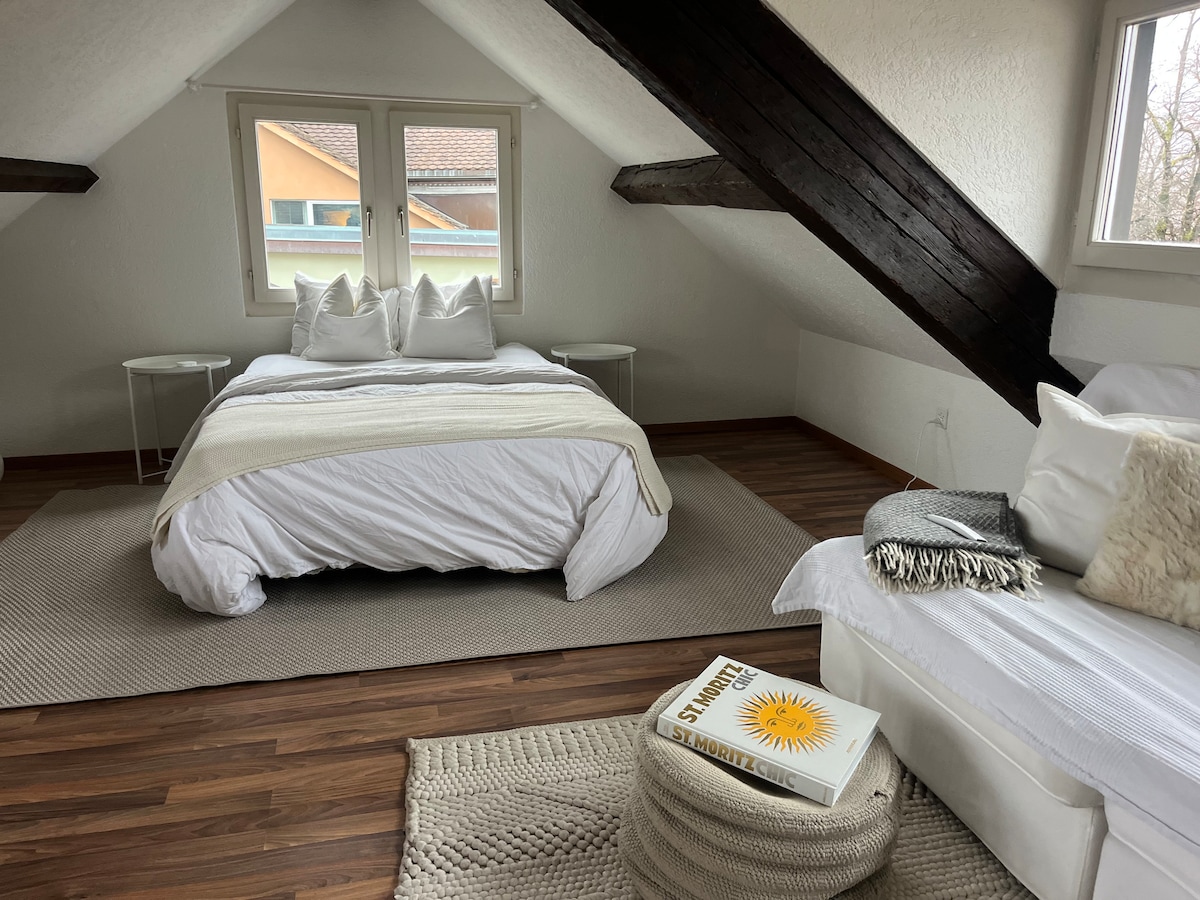 Airbnb 超讚房東 🙌 距離市中心 10 分鐘 📍 位於蘇黎世市中心的現代化和設備精美的三層閣樓,擁有四公尺高的天花板、私人露臺和Tempur床墊,讓您享受卓越的睡眠舒適度。 儘管地處中心位置(距離蘇黎世主站僅10分鐘,距離ETH僅3分鐘),但房源位於幾棟住宅大樓之間,讓您完全安靜,沒有鄰居的噪音