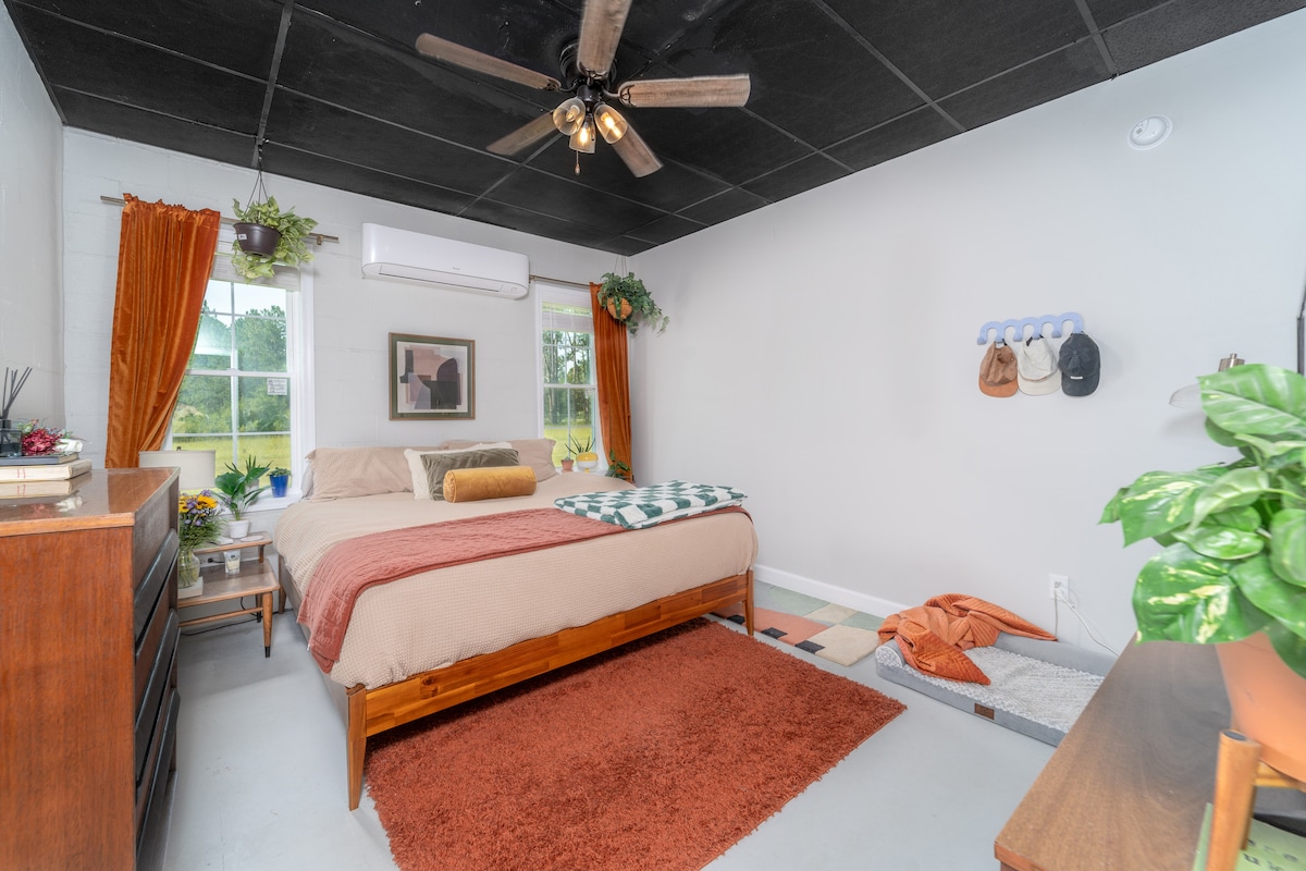 Stay in a unique piece of Alma history! This cozy remodeled apartment was once the lounge and concession area of the original 1970s Alma Skating Rink. Recently updated with modern finishes while keeping its vintage charm. Located just 1 mile from downtown, the property offers quiet surroundings and privacy behind a gated entrance. Perfect for guests looking for a comfortable stay with character and local history.