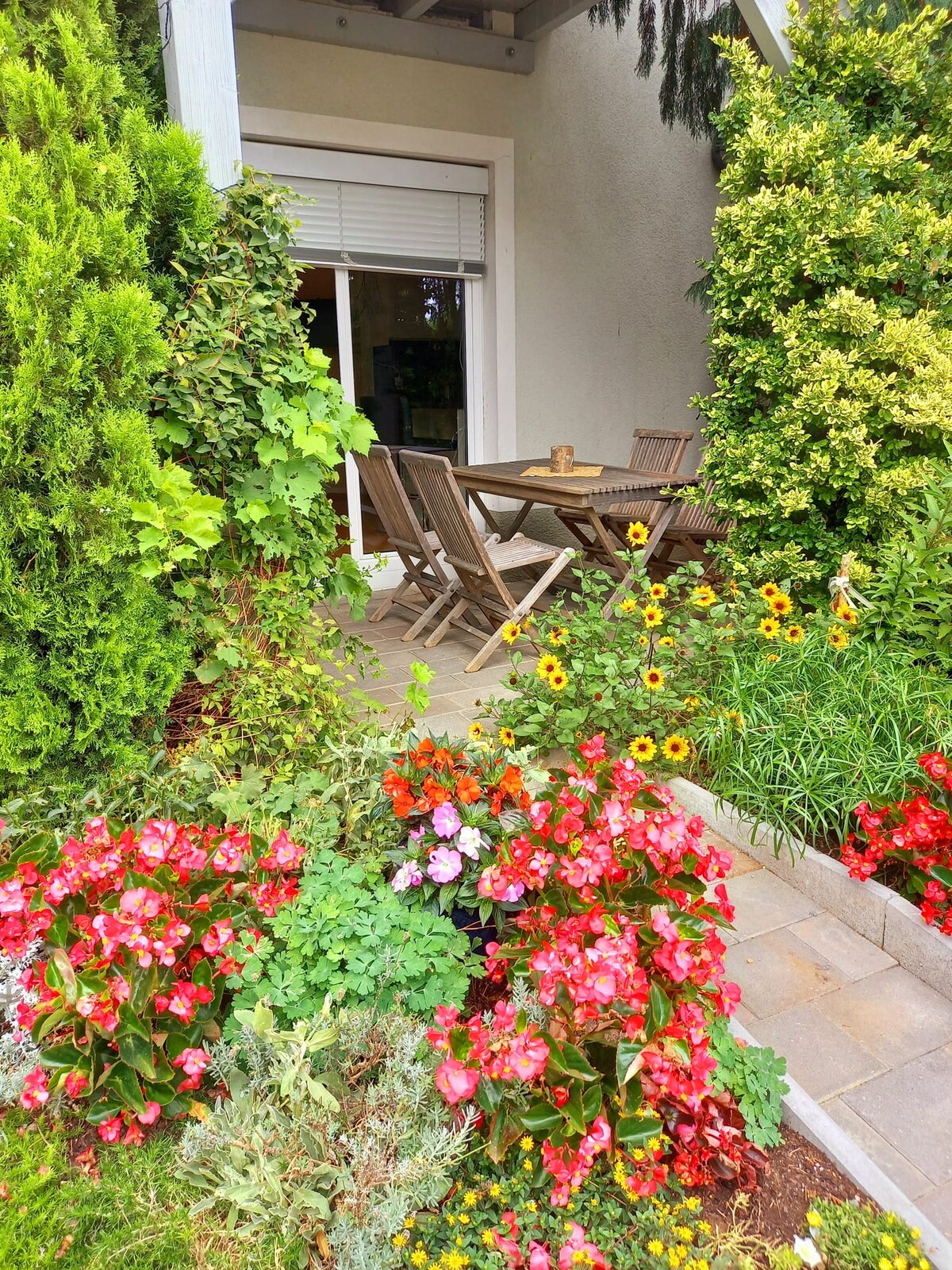 花園別墅。 整套公寓包括一間臥室、一間客廳、餐廳、一個全新且設備齊全的廚房、帶浴缸的浴室和獨立的廁所,地下室可俯瞰花園景觀,花園內有座位。房間可單獨進出,並有一扇連接門。物業內可停放1輛車。公共交通便利。