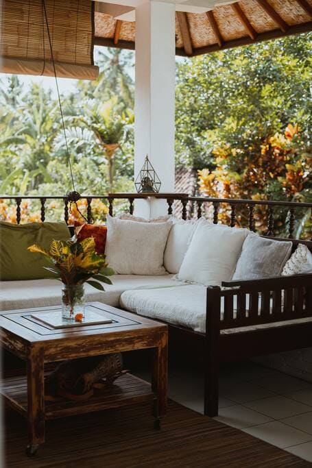 Brahma is a rare two-level jungle loft in peaceful Penestanan, just a 3-minute walk to Alchemy Yoga and cafés. Ideal for monthly stays, the space features open tropical views, a full kitchen, strong Wi-Fi, workspace, and a calm elevated bedroom above the trees. Located inside the private 11:11 Bali Retreats compound, it’s perfect for writers, creatives, and guests seeking a quiet long-stay sanctuary near Ubud Center