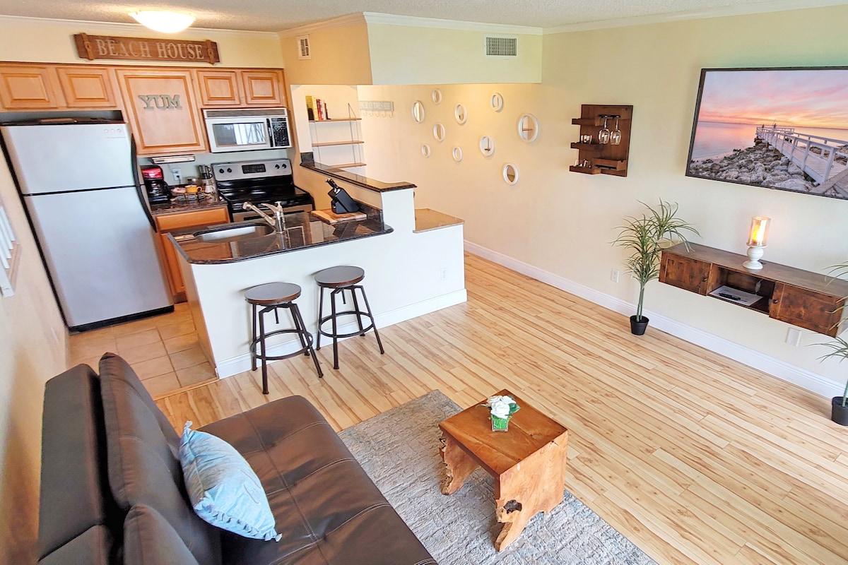 這間海濱一房公寓是您放鬆身心的完美住宿,無論是度假還是出差,都能創造新的美好回憶。設備齊全的廚房。洗衣機和烘乾機位於三樓,投幣式。房客可以使用度假村的公共區域,如溫水泳池、火坑酒吧/餐廳。 位於坦帕機場(TPA)附近。步行即可抵達公共海灘餐廳和Courtney Campbell步道。度假村無法前往海灘。