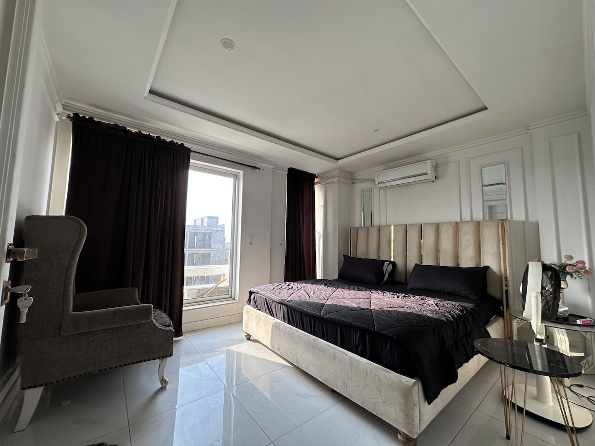 歡迎來到巴基斯坦拉合爾巴赫里亞鎮的寧靜時尚度假屋。 這套設備齊全的公寓非常適合商務差旅、浪漫度假或家庭入住。 距離艾菲爾鐵塔、餐廳和咖啡廳僅幾分鐘路程。 享受24小時保安、快速WiFi、可收看Netflix的智慧電視、加大雙人床、廚房和自助入住。 舒適、便利和隱私:您完美的家外之家。