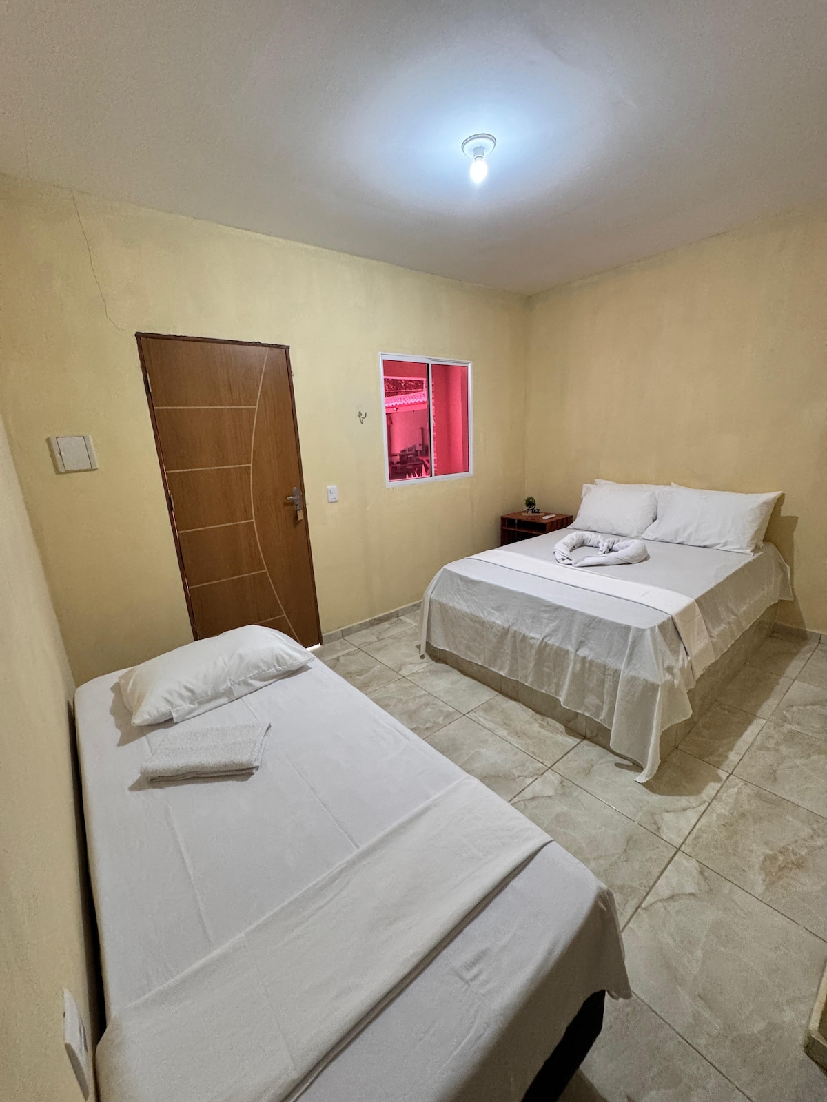 腳踏入沙灘! Pousada的一樓空間,分布如下: 01公寓,配有小廚房、起居室和1間三人房(有空氣) +01間三人套房+01家庭套房( o1三人房,空氣+ 1間無空氣雙人房)。 所有面向大海的住宿陽臺、空調和電視,可欣賞黎明美景。 可選(不含) :每日清潔和早餐。