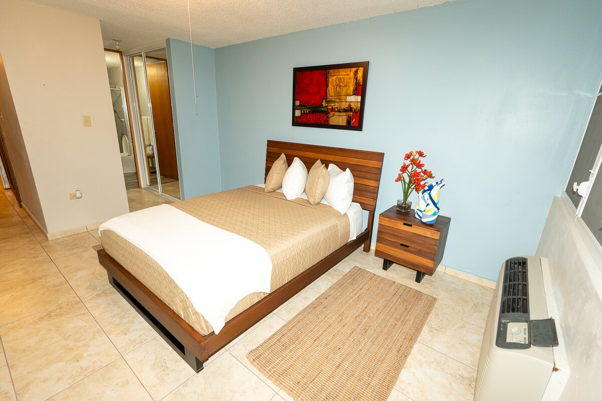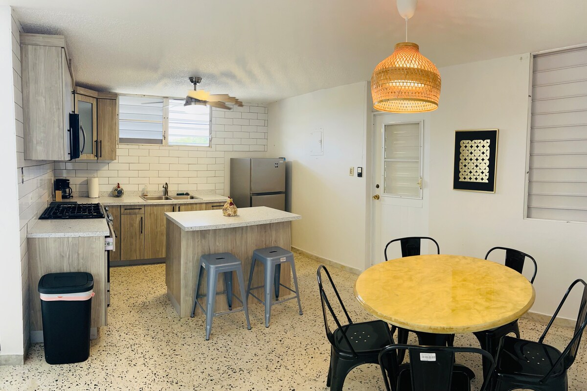 舒適的1間臥室公寓,配備所有設備與服務,讓您感覺像家一般舒適。 獨立入口,配備專為輪椅設計的小坡道。 照明良好的街道,前面有安全的停車位。 公寓無障礙。 兩張全尺寸牀和一張日式牀墊/沙發牀,最多可容納5位房客。 位於Cabo Rojo鎮的歷史中心。 很棒的餐廳和電影院步行距離。 Cabo Rojo的美麗海灘就在附近(車程10-15分鐘)
