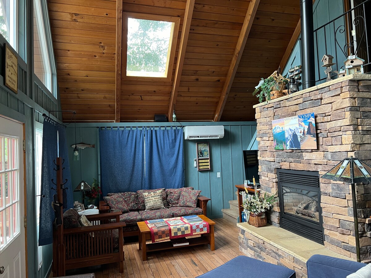 Lummi Island forest A-frame: fire pit, AC, dogs ok