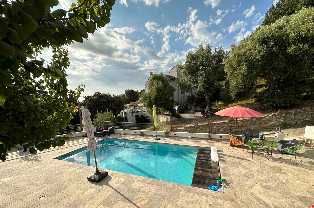 獨立別墅的一樓,位置優越,可俯瞰海景和泳池。距離羅亞海灘 (Roya) 3 分鐘,距離超市 5 分鐘(e. Leclerc),距離聖弗洛朗港 (port de Saint-Florent) 10 分鐘,距離巴斯蒂亞機場 (aéroport de Bastia) 35 分鐘。全新翻修,私人出入口和停車位,高速 WiFi,5 分鐘內即可抵達許多活動地點。必須開車!