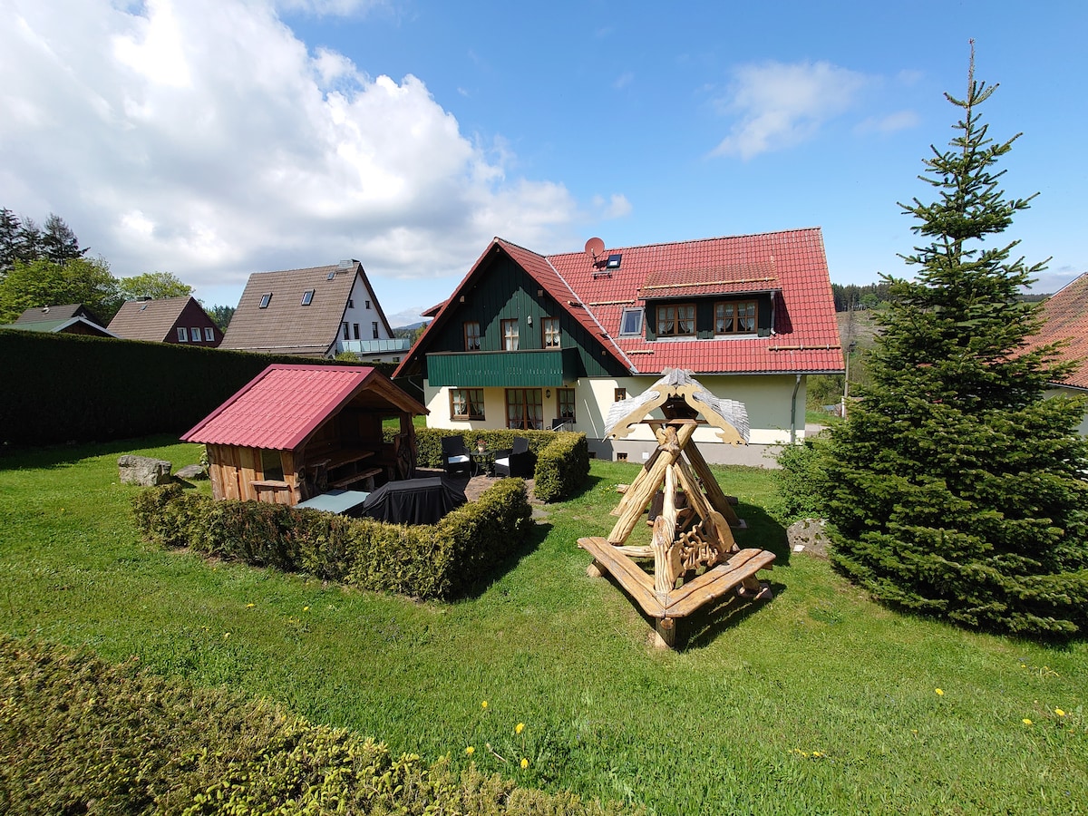 In unserem frisch renovierten Ferienhaus "Landhausferienwohnungen „Am Brockenblick" befinden sich mehrere Ferienwohnungen für je zwei, drei oder vier Personen. Eine Ferienwohnung ist barrierefrei ausgelegt. In allen Wohnungen könne Sie schnelles WLAN kostenfrei nutzen. Unsere großzügige Wellnessanlage mit finnischer Sauna, Dampfbad und Fußwärmebecken kann am Nachmittag ohne weitere Kosten genutzt werden, und im Fitnessraum können Sie frei nach Ihren Wünschen sportlich aktiv sein.