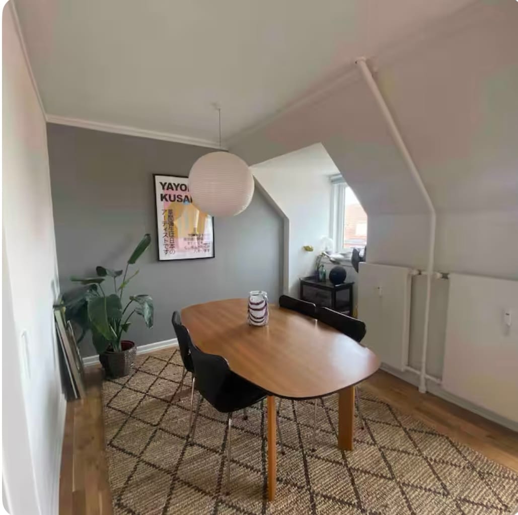 Enjoy life in this peaceful and centrally located accommodation with its own entrance. You have your own kitchen, bathroom, toilet, a loft with a double bed, and a sofa bed on the ground floor that can be converted into another double bed with room for two. There is also a private courtyard - all just a stone's throw away from Lyngby's vibrant shopping and cafe scene. It's only 15 kilometers to Copenhagen, and a 16-minute train ride away.