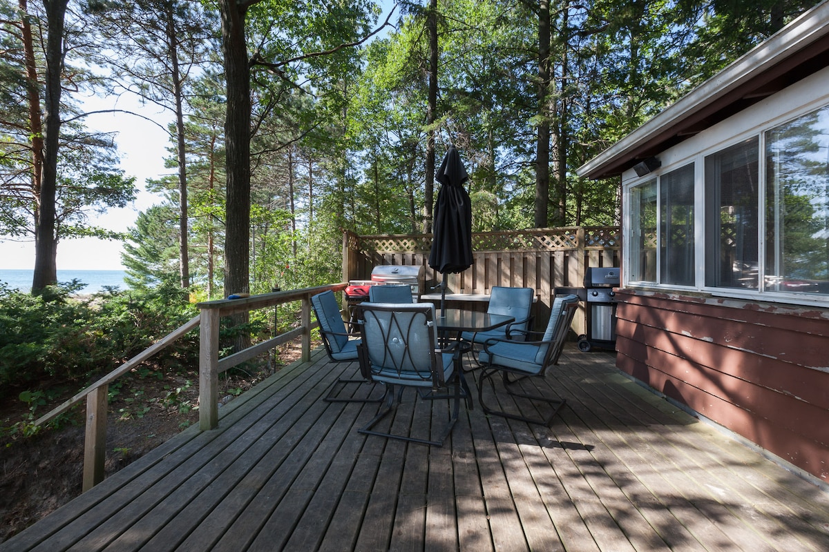 入住我們精美翻新的*全季*海濱小屋,欣賞喬治亞灣的壯麗全景!您會發現小屋坐落在沙丘上,就在世界上最美麗的淡水海灘之一。這個罕見的位置有一個私人遮蔽的甲板,懸掛在白色沙灘上,在一個比其他任何地方都更靠近海灣的海灘房屋中!夏季房客還可以使用Paul Lafrance建造的加熱海水泳池和大型度假村甲板。