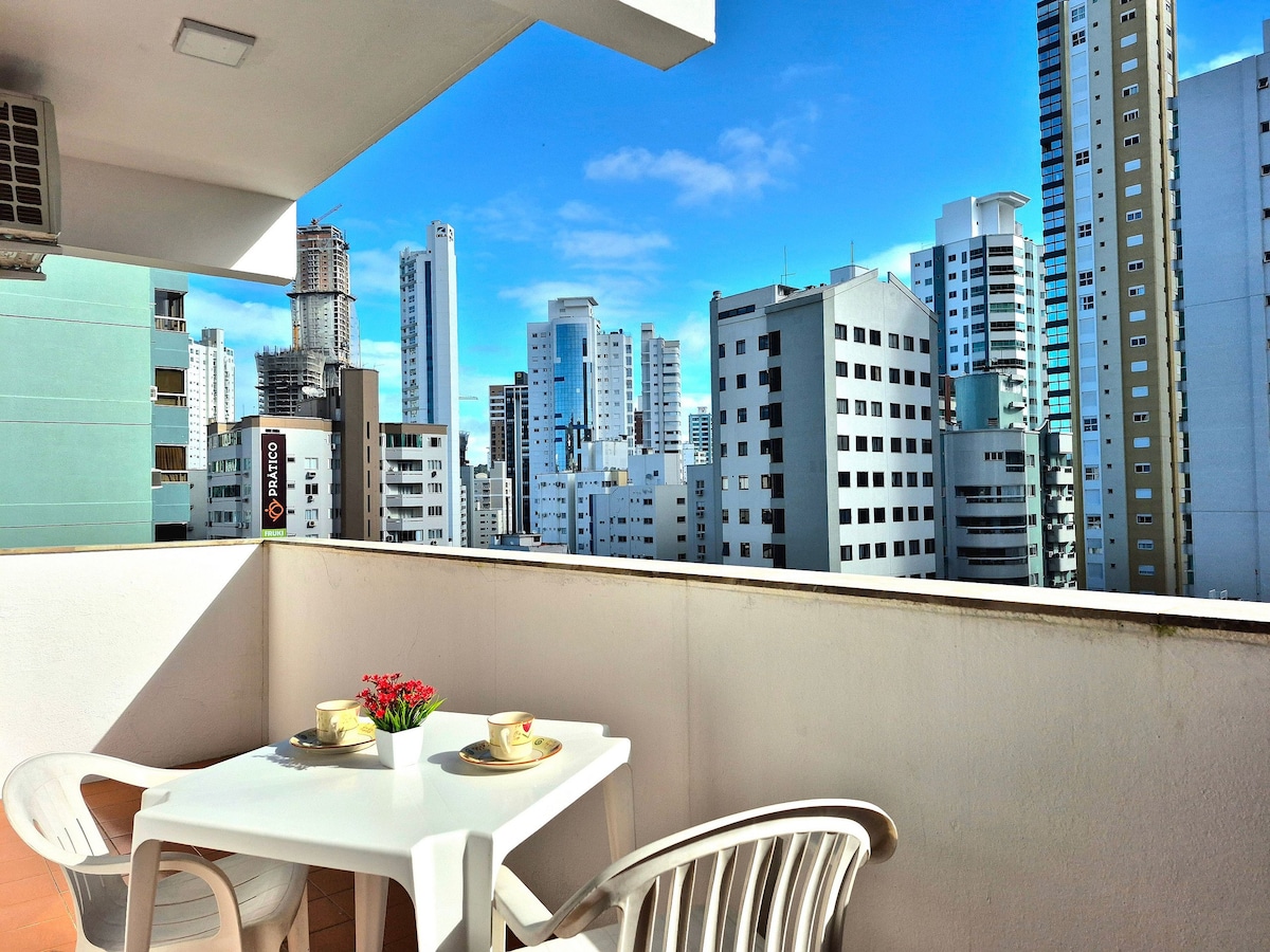 Apartamento na quadra do mar com sacada e vista para a cidade. Localizado na Av. Brasil na região central próximo a Barra Sul, pertinho de estabelecimentos diversos que atendem as necessidades do dia a dia e restaurantes de alta gastronomia. Sacada ampla e ensolarada com vista lateral para o mar, vista para cidade e Av. Brasil.