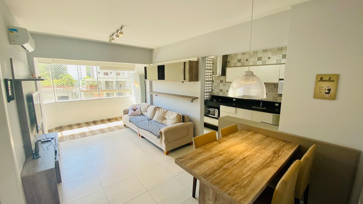 舒適、海邊、翻新和裝飾的海景大樓側面公寓! 非常適合要求高的夫婦,環境親密而溫馨 ->洗衣機和烘乾機 -> 靠近海灘、Interpraias公園、纜車、碼頭、水族館、海盜冒險、Espaço FG Sul! ->所有房間都有冷暖氣和冷氣! -> 1 個輪轉車庫,配有代客泊車 ->廚房配備基本用餐所需的一切 ->家具和裝飾非常精心,注重溫馨和舒適。