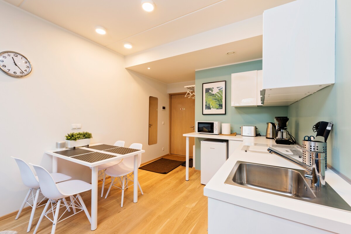 Discover a bright, modern studio retreat - designed for couples and small families seeking a peaceful stay with stunning Old Town views. Enjoy a renovated interior, a spacious 43 m² open-plan layout, and a 55” Smart TV. Located just 2 minutes from Old Town, this home offers comfort, convenience, and space to unwind. Paid parking is available. And one more amenity you can’t filter for: a very friendly host. 😄