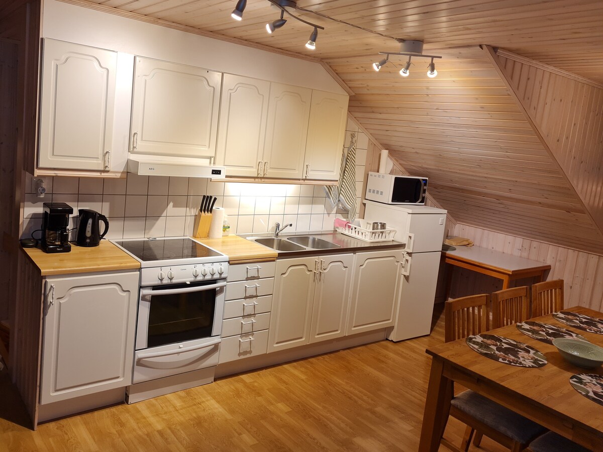 獨立房屋內的明亮閣樓,可欣賞到 Västra Nedsjön 的美景。閣樓位於鄉村地區,靠近哥德堡和博羅斯。該地區有許多遊覽機會,例如Liseberg、Universeum、紡織博物館和哥德堡群島的精美遊覽。附近有游泳湖泊、漂亮的步行和慢跑小徑、釣魚、採摘漿果和蘑菇的機會。樓層內有私人廁所和淋浴間。住宿適合兩位成人或兩位成人和兩位兒童入住。