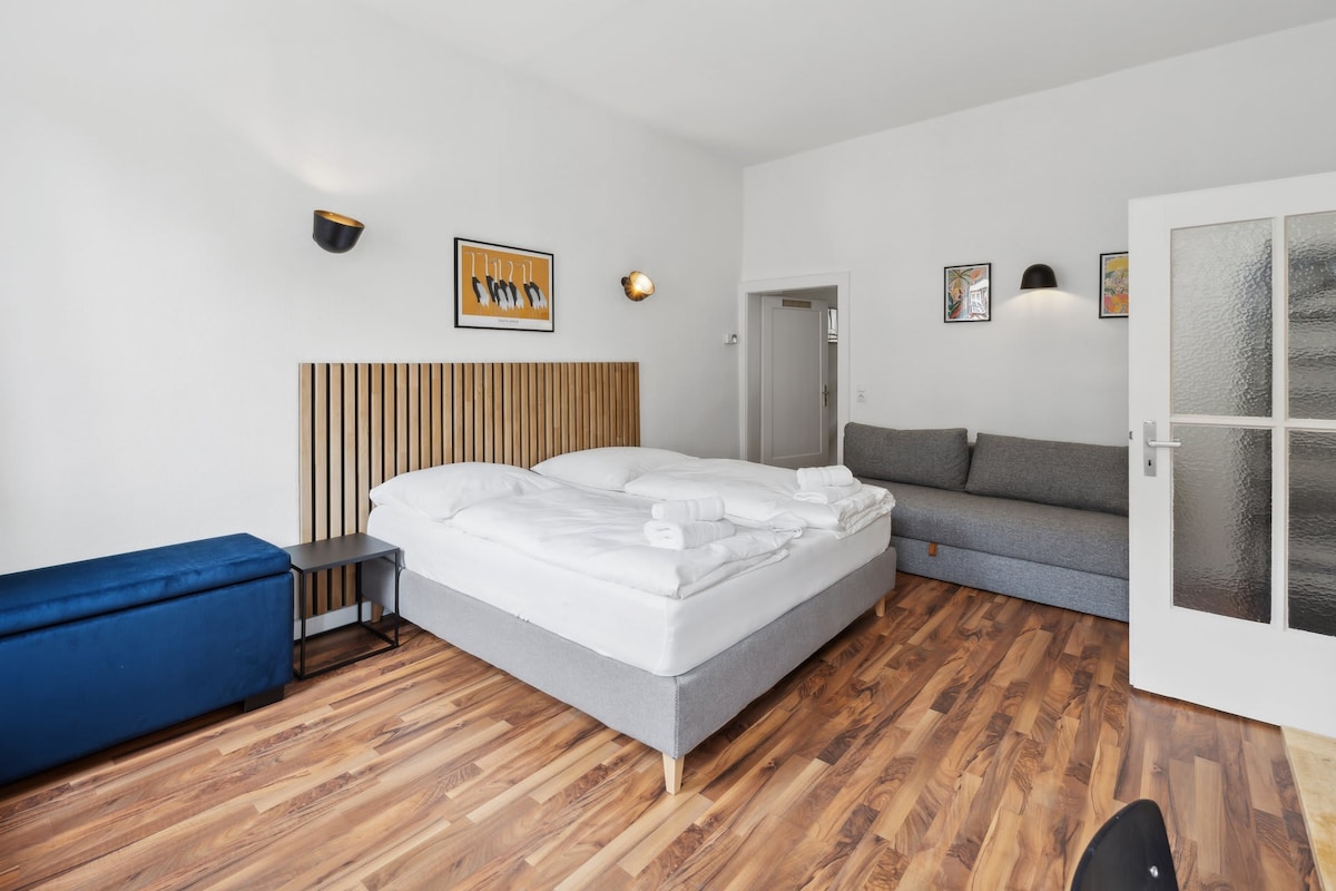 這間現代化的兩房公寓位於一個小型住宅區的後面,環境安靜。它是為兩名成人和兩名兒童而設的。臥室有一張高品質的彈簧床(180 x 200 公分),客廳有一張兒童雙層床(兩個床位,每個 80 x 180 公分)。公寓有一個朝向庭院的陽台,下面有一個免費的地下停車位。 步行即可抵達火車站 550 公尺、市中心 1100 公尺、舊城區 1800 公尺。