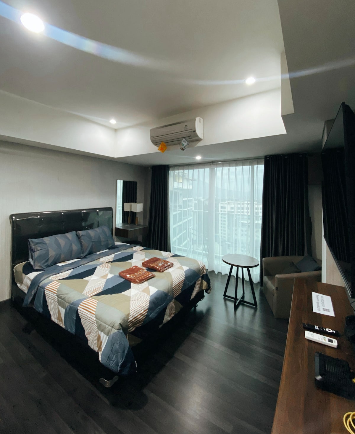 Premium Studio Apartment DAGO SUITES Bandung, Jalan Sangkuriang no 13 Bandung. Suitable for 3 people. ALL FURNITURE MADE BY METRIC 100% COMFORT (Wardrobe, Kitchen, Furniture). Water Heater Facility, Wifi, AC, Stove, TV channels, Refrigerator, Wardrobe, Balcony etc. You can ask for an extra bed (not springbed) with additional cost IDR 150.000 A new apartment with a good mountain view. Located in Central of Bandung famous street Dago.