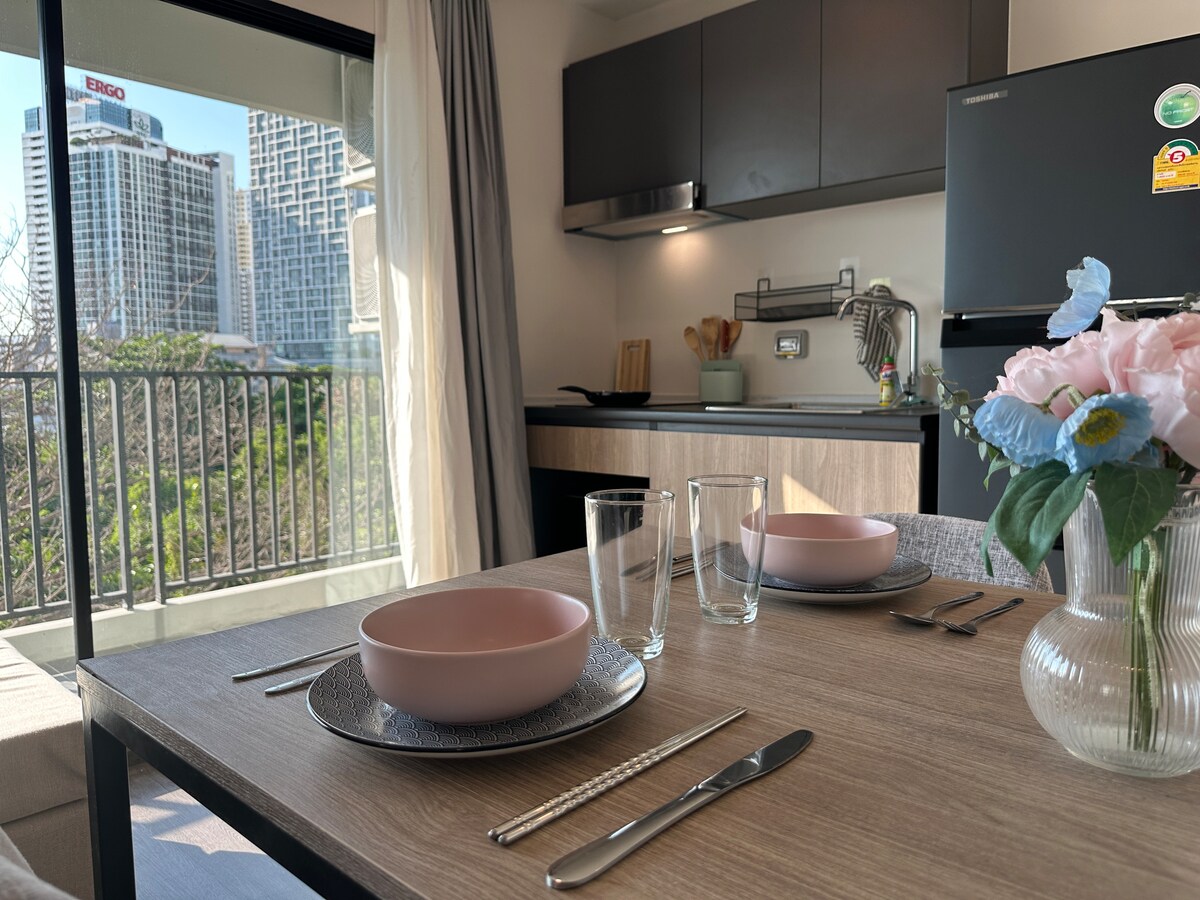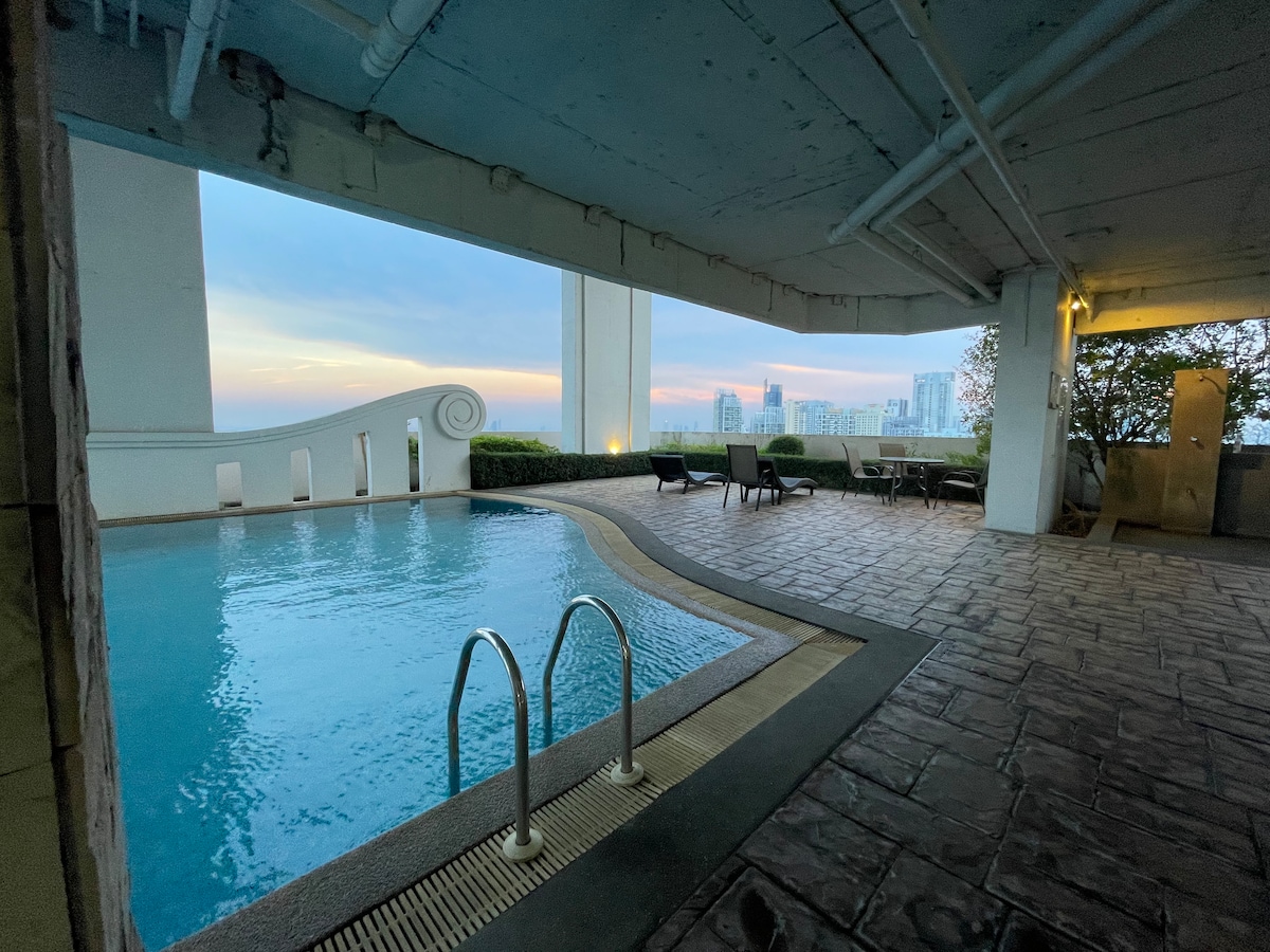 1BR-步行即可抵達空鐵Ekkamai站-天空無限泳池和健身房