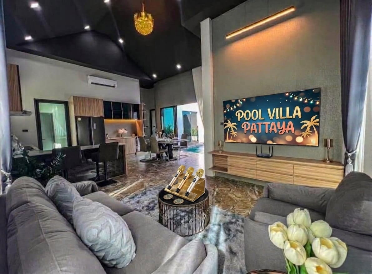 别墅位于芭提雅市区,著名的79秀旁,周边超市,餐厅,酒吧,按摩等生活需求一应俱全。 别墅配备四房五卫,所有房间均配备卫生间、梳妆台、衣柜。 公共区域含10人坐全自动餐桌,厨房配备电磁炉,明火炉,电饭煲,微波炉,冰箱,消毒柜等厨房用品。 别墅独有专属KTV房,多语言切换,满足不同国家的租客需求。 TML专注于做泰国芭提雅高端民宿品牌,我们将竭尽所能为您提供一个舒适的度假环境。