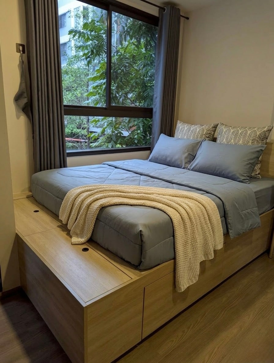 新翻修的1間臥室公寓,配有新家具,空間非常舒適,因為它是一個安靜的角落公寓。 靠近火車站(Si La Salle),方便長期住宿。 樓下有健身房、游泳池和大型圖書館,供遠程工作的人使用,需要額外的空間放鬆身心。