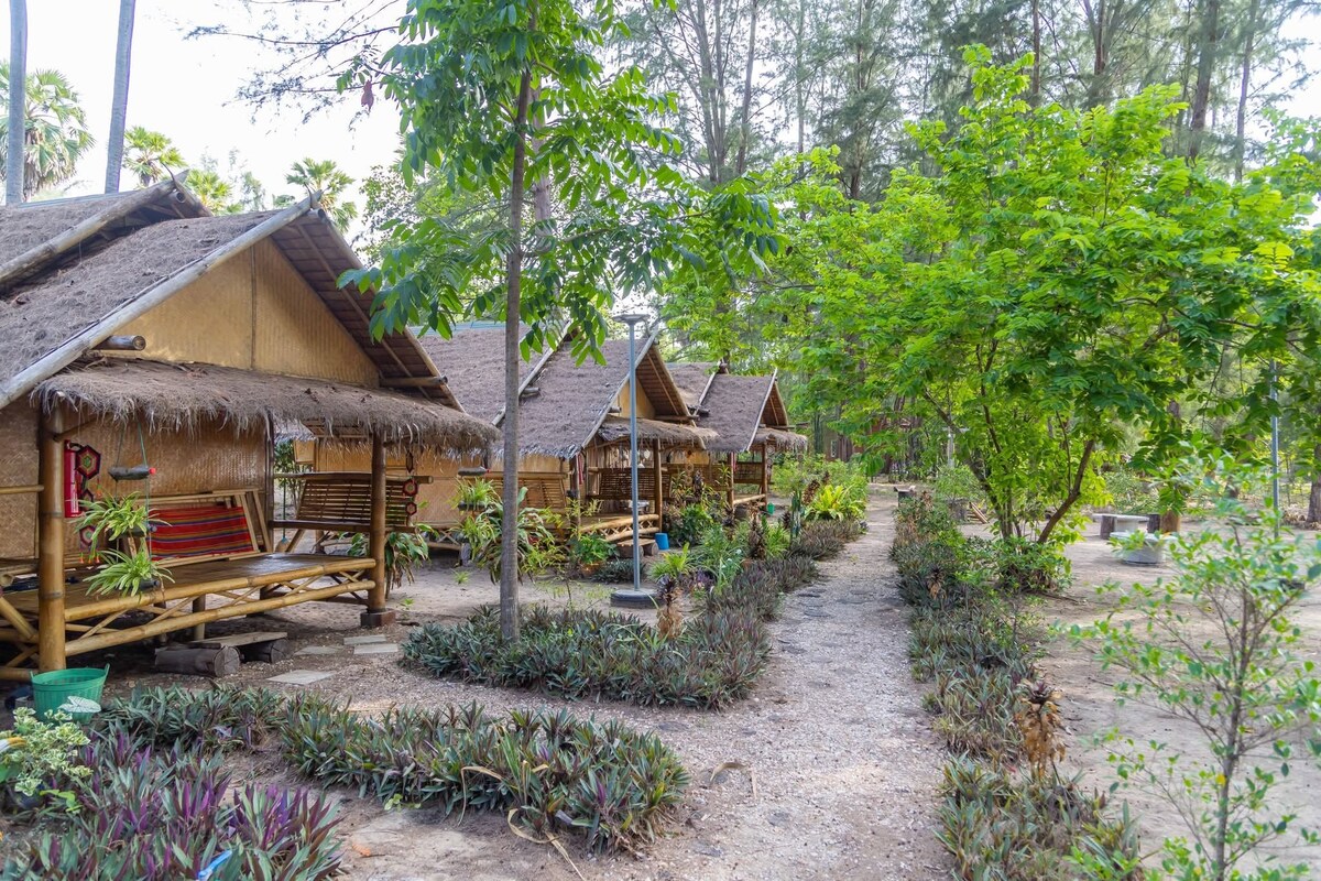對農村風格目的地的寧靜環境印象深刻。獨立房屋,總居住空間為60平方米。有兩間獨立臥室、兩間獨立浴室、一間廚房和一個停車位。步行 2 分鐘即可抵達海灘。房子附近有一家餐廳,價格優惠,食物非常美味。氣氛安靜,非常適合放鬆身心。如果您需要私人管家或接送服務,請告訴我們。會額外收取服務費。建議您擁有私人車輛或租用摩托車,因為住宿地點離商店很遠。