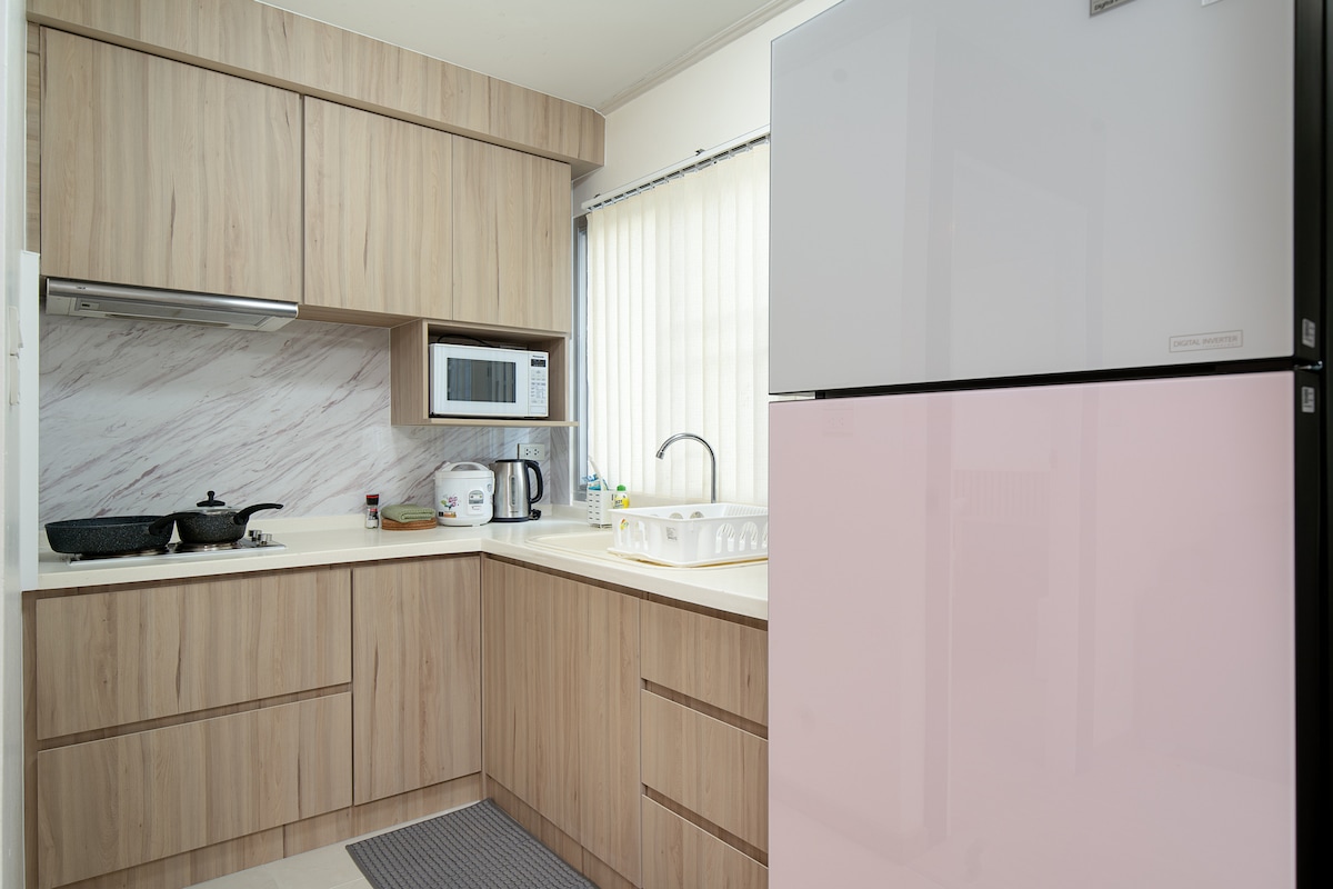 寬敞的85平方公尺2張牀和2間浴室的公寓,配有指定的工作區域和陽臺 最近翻修過,新家具非常溫馨乾淨。 免費停車位、WiFi、水電 屋頂的遊泳池,配有燒烤爐、桌子和座椅供房客使用。 曼谷最熱鬧的商場距離「Emsphere」900公尺 附近的景點: - Benchasiri & Benjakitti公園 - Emquartier & Emporium商場 -街頭食品攤販 -傳統泰式按摩 -チェックインのてき -摩託車和計程車