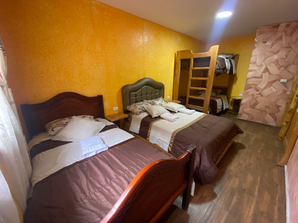 日出雙人房,配有2.5人牀、浴室和寬敞的淋浴間,可俯瞰山景和Tungurahua火山。 您可以使用房間外面有大露臺景觀的廚房。 非常安靜,除了鳥的歌曲外,您沒有外面的噪音。您可以欣賞壯觀的日出景色