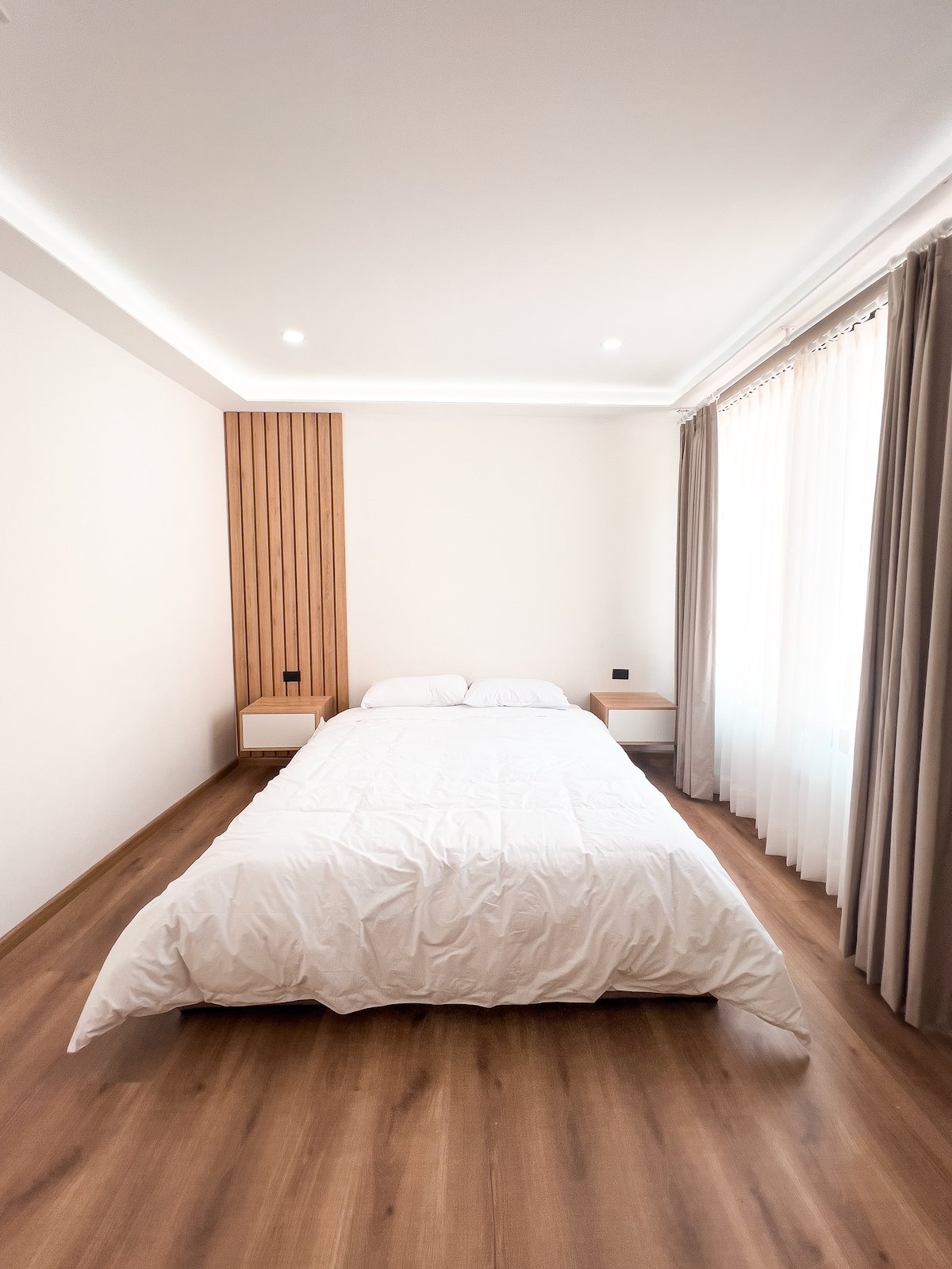 這間豪華公寓有三間帶獨立浴室的臥室,為所有住客提供舒適與私密的空間。廚房位於主套房內,該套房還設有早餐區和一個可欣賞壯麗山景的露臺。室內設有按摩浴缸,是忙碌一天後放鬆身心的理想之選。其區域組合,加上壯麗的景色和按摩浴缸,是休息的完美場所。