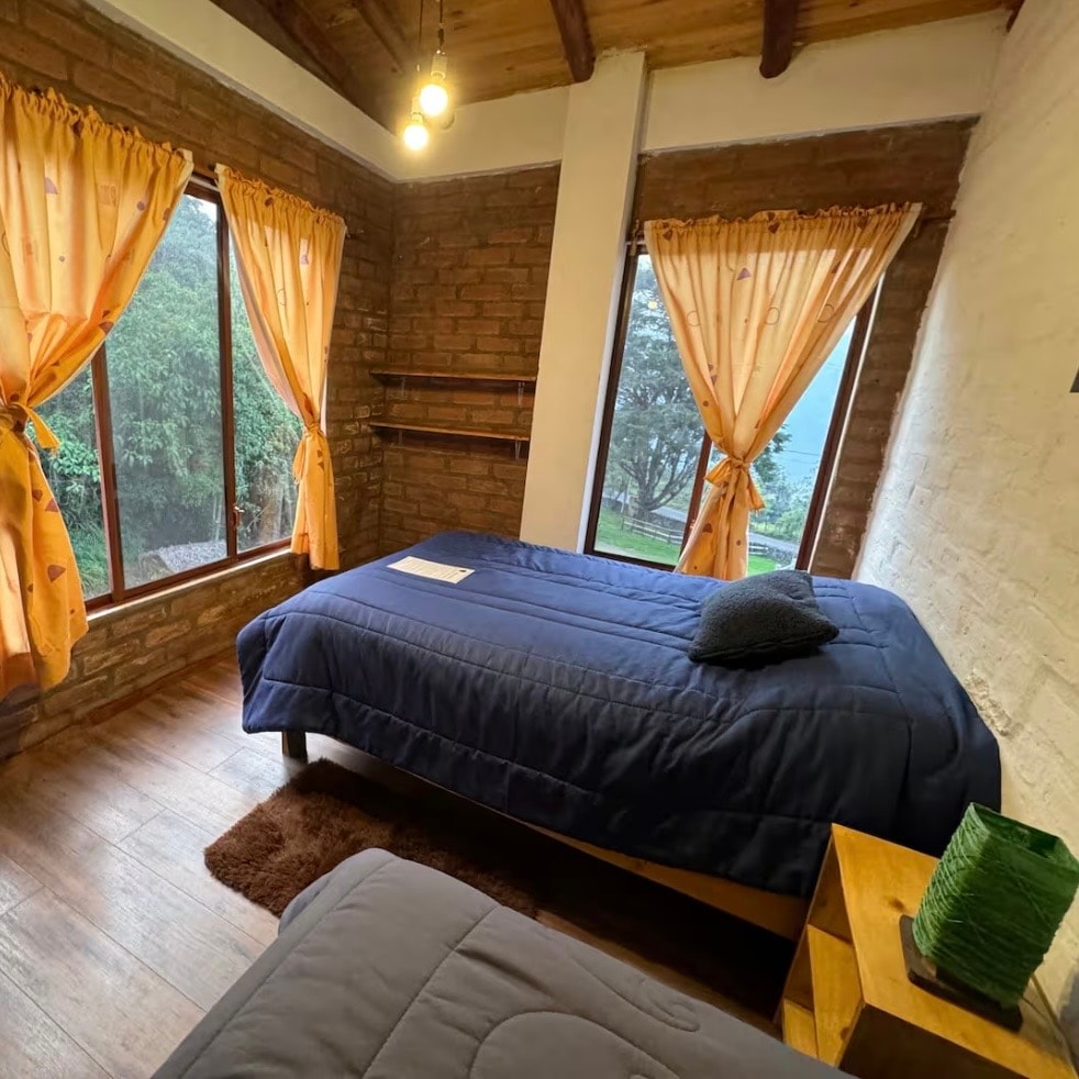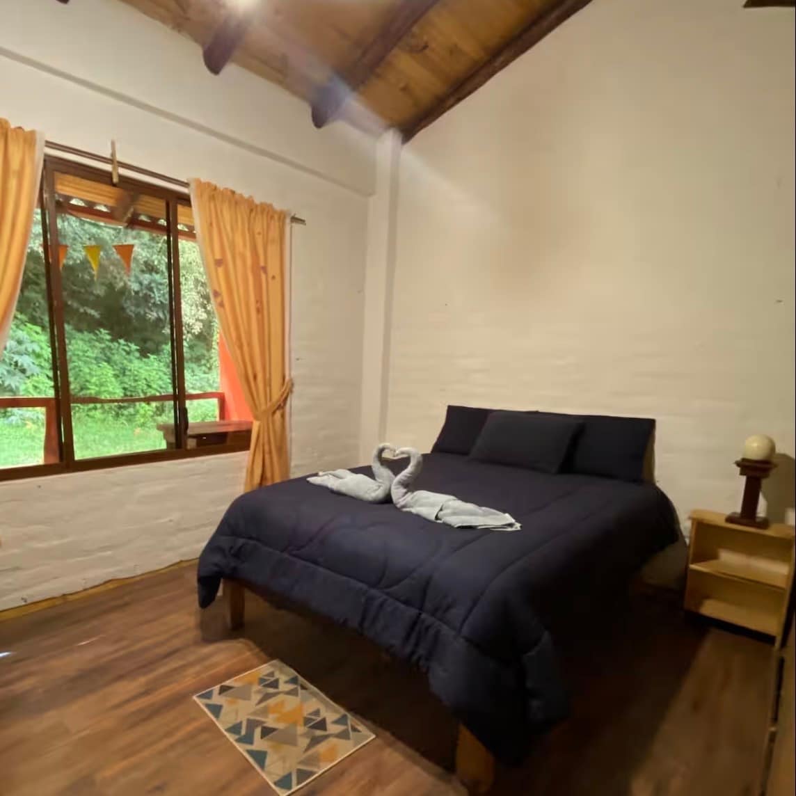 Inviting double room ideal for travelers who want comfort without overspending. Bathroom is shared and kept exceptionally clean. Guests enjoy access to wide-open grounds, rustic design, relaxing common spaces, and convenient parking. Close to Baños’ most popular destinations while offering a peaceful retreat surrounded by nature.