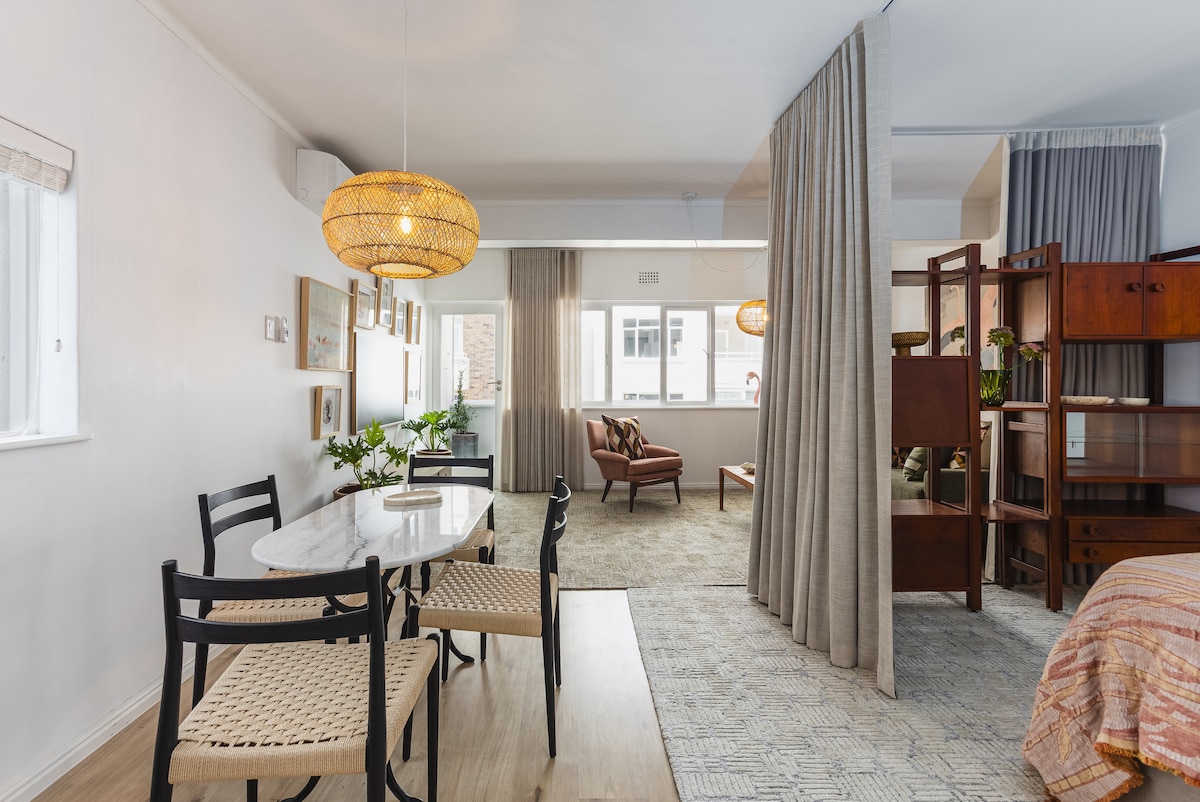 Art Deco Penthouse是獨特的隱藏秘密,可欣賞完全不受限制的海景。俯瞰大海和著名的Sea Point Promenade。您可以聽到海浪聲,眺望海灣,一路前往羅本島。這個小小的舊世界奢華包括一個美麗的豪華臥室套房、一個放鬆的觀景休息室、帶壁爐和跳水池。這是開普敦的終極中心位置,靠近市區。