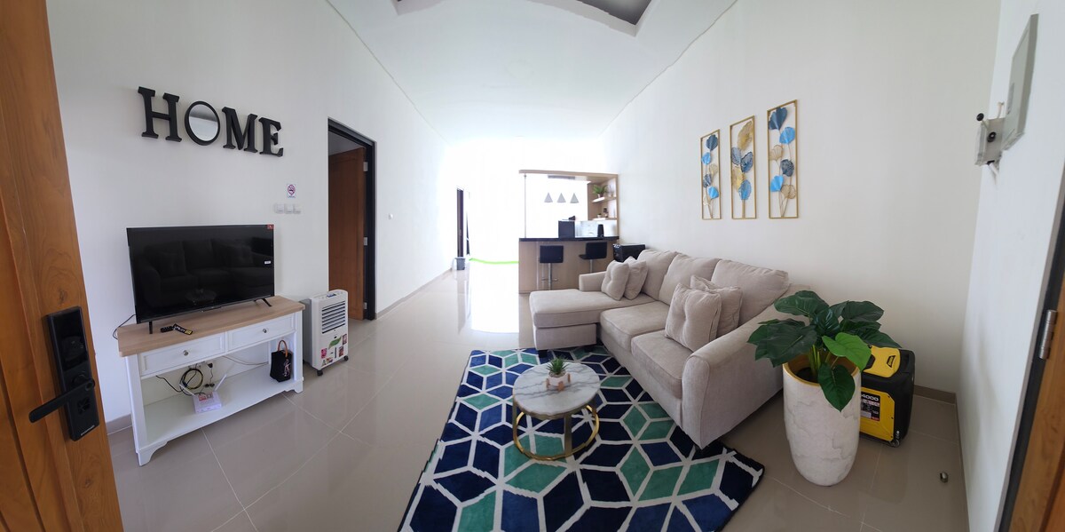 位於Bantul的獨立別墅。 靠近市,有傳統的市。 從別墅,您可以透過線上應用程式輕鬆訂購食物。 前往Mount kidul、Bantul和NYIA機場的其他步道。 5位房客 2間臥室 -主臥室加大雙人牀浴室,配有浴缸 - WIFI - Netflix - 可停放3輛車的停車位 院子很大,有一個車庫。 現代化設施,如遊泳池、食品庫、配備60英寸智慧電視的家庭房、室內和室外餐廳
