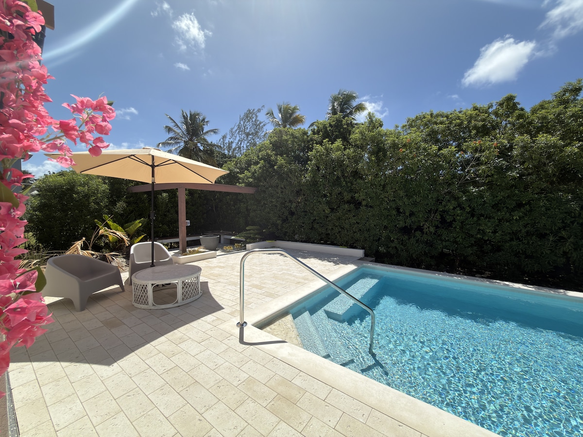超級溫馨的私人住宿。 華麗的單臥室、一間浴室、空調單間公寓,配有小廚房,非常適合商務或休閒旅行,或安靜的工作或放鬆空間。 位於中央聖邁克爾( Central St. Michael )的寧靜住宅區。 輕鬆使用所有必需品,包括西海岸的海灘、餐飲和購物、Entm 't、Bridgetown、歷史悠久的首都、免稅購物、Kensington Oval、B' town Port、美國大使館。 Warren's, shopping & business center, UWI.