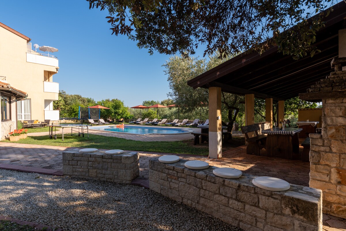 全新的豪華設計別墅,坐落在克羅地亞伊斯特里亞省巴萊村中心。在開放空間的起居區享受寧靜,欣賞中世紀村莊的美麗景色。 房子有一個美麗的花園,四周是大自然。 在室外溫水泳池中游泳,或在舊橄欖樹的陰涼處放鬆身心。