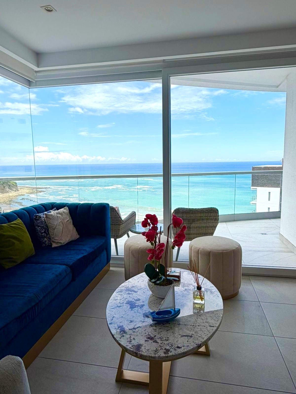 海景公寓,露臺和陽臺,可俯瞰海景和私人海灘,位於海洋城市 (Ciudad Del Mar),距離曼塔市中心 10 分鐘。公寓有 3 間臥室、3 間浴室、客廳、設備齊全的廚房、4 臺智慧電視、空調、Wi-Fi 和有線電視 - NETFLIX、車庫、洗衣機、烘乾機。長期和短期租賃。